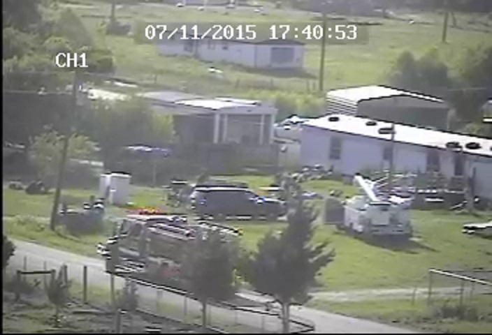 Didn't see any ambulances. That's the last of 3 fire trucks that were there along with a half dozen sheriff's cars. Power company bucket truck killing the power- just in case they had any delusions about sleeping in there tonight.