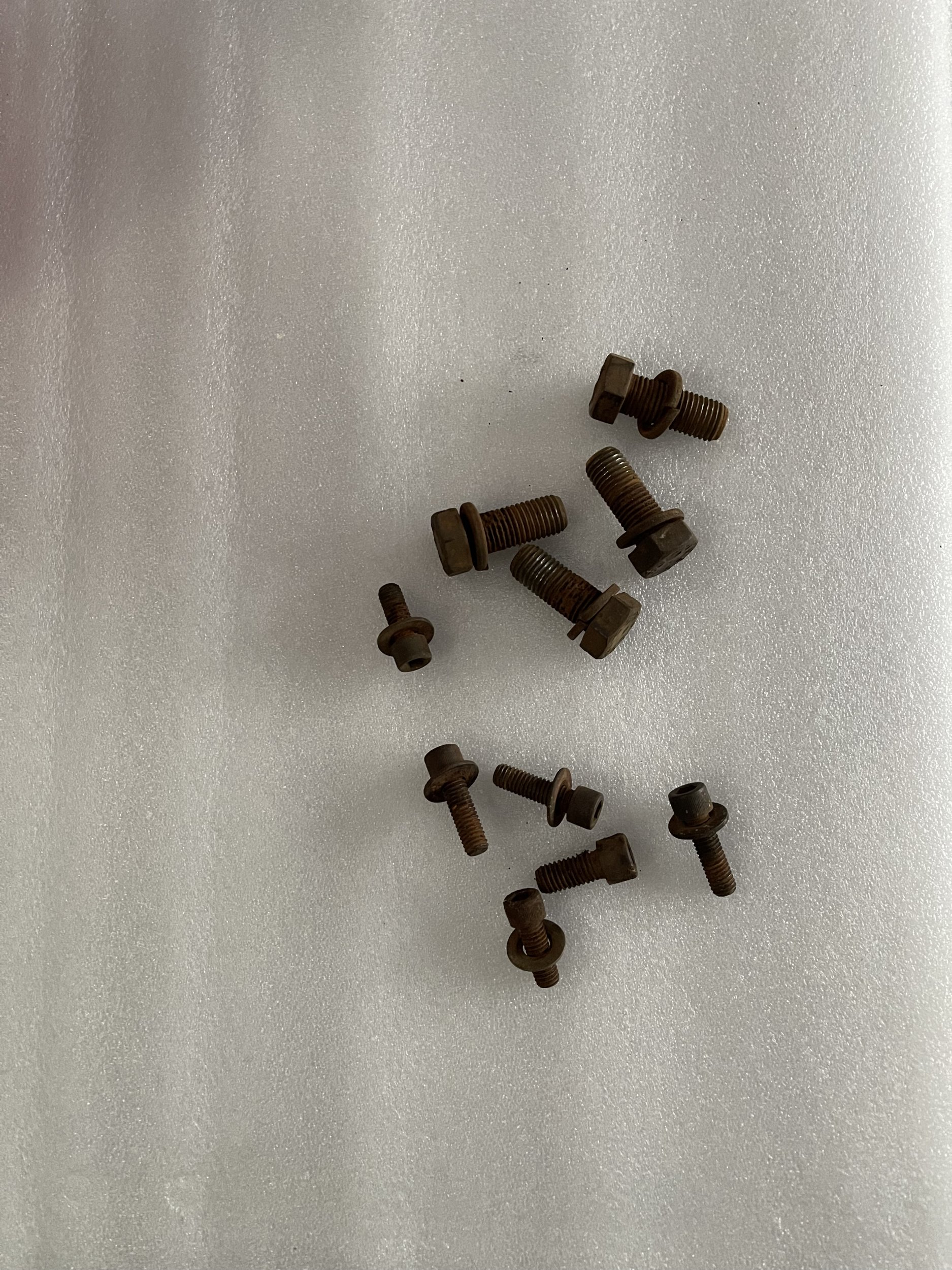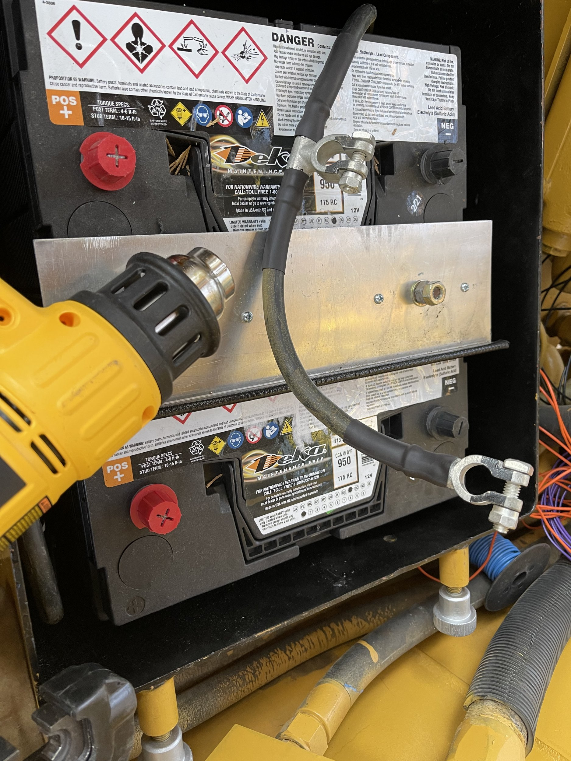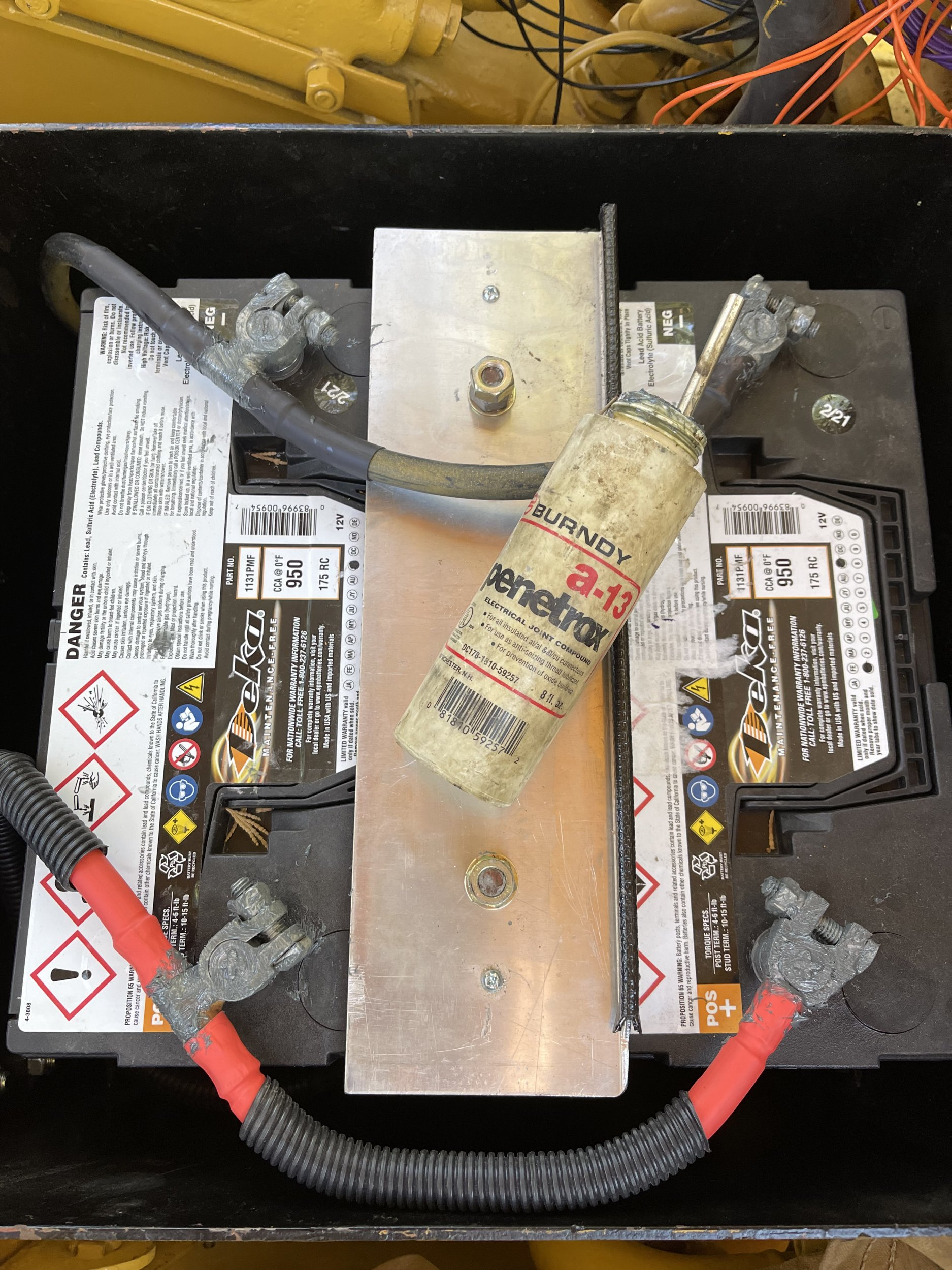 I lined the battery box with 1/4” rubber and fabricated the hold down. The cables were pressed with my 6 ton crimper. The bottle in the picture is what the terminals were coated with. I didn’t like the little plastic tube for the air filter restriction gauge so I put in a better one for the heat in there. The pile of rusty bolts is what came out of the dash and the grab bar. Now stainless. If I forgot to explain a picture just let me know.