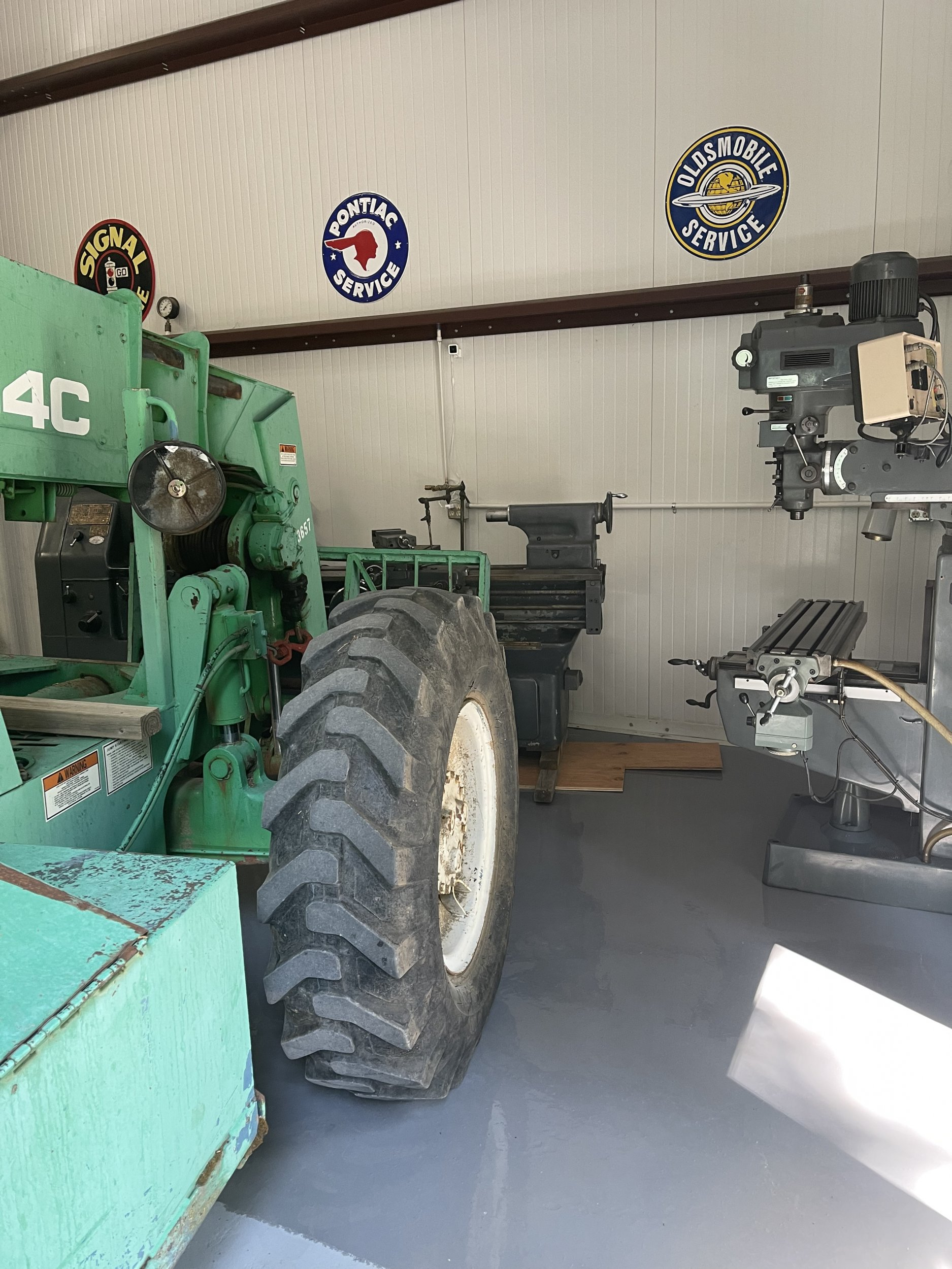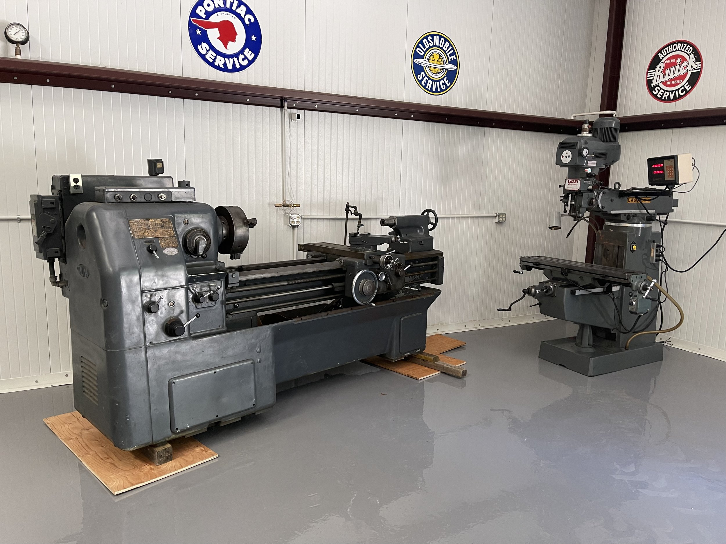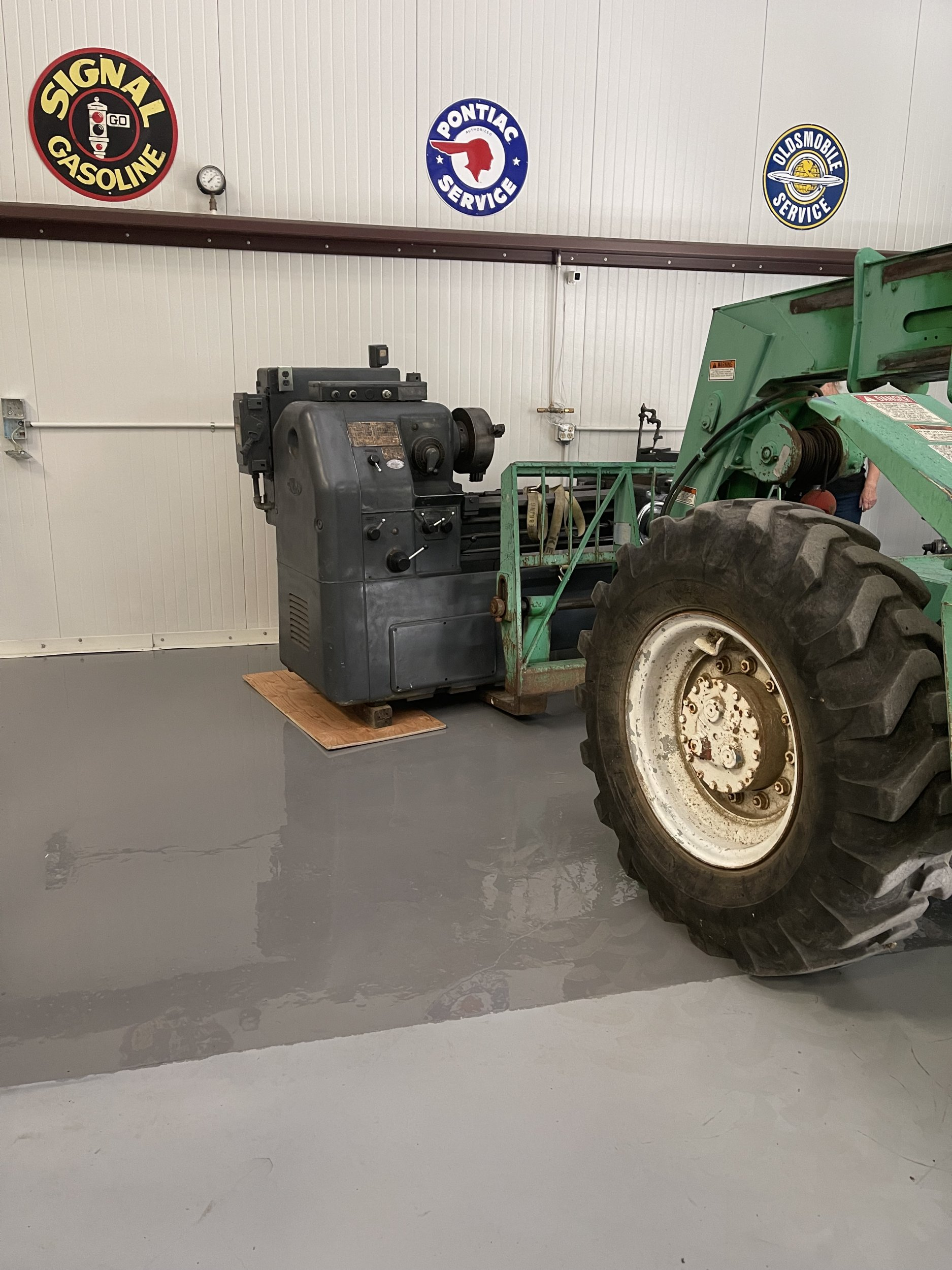 One of my other projects was to upgrade my prewar lathe to a newer machine that can hold tolerance better and also do metric threads. While I had the machine out I moved the mill and some other items and put a new coating of a darker color on the floor, I am still setting up the lathe, cleaning it up and making sure all the oil systems are working.