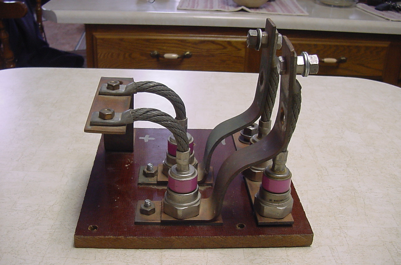 The hex with the purple band are diodes. See the + and - marks on the far side? Why, I don't know.
