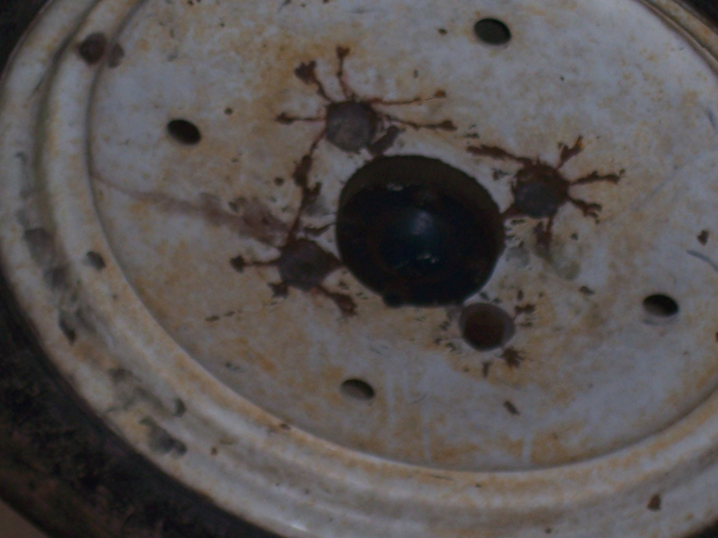 This is the inner side of the wheel shown above. Before the welds were ground down, no wonder the wheel didn't rotate true.