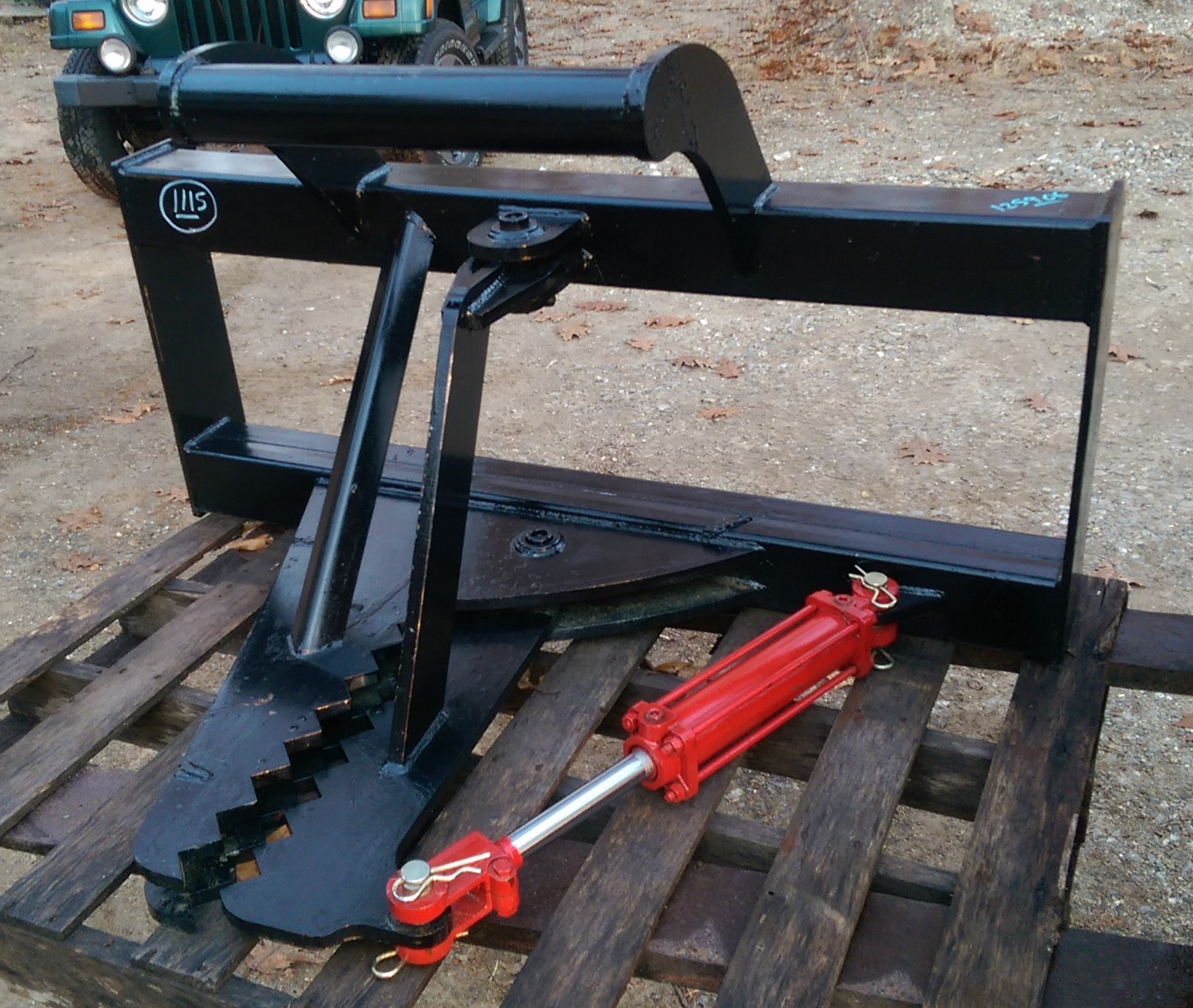 Do you know the brand - it looks pretty nice with a push bar. Would you say it will handle 2 1/2” trees?We have a generic one... pic below... Great attachment for small stuff, just have to remember the limitation of the FEL... We use it all the time... (& we purchased still new... for a crazy low price at an auction, which made even a better deal...)