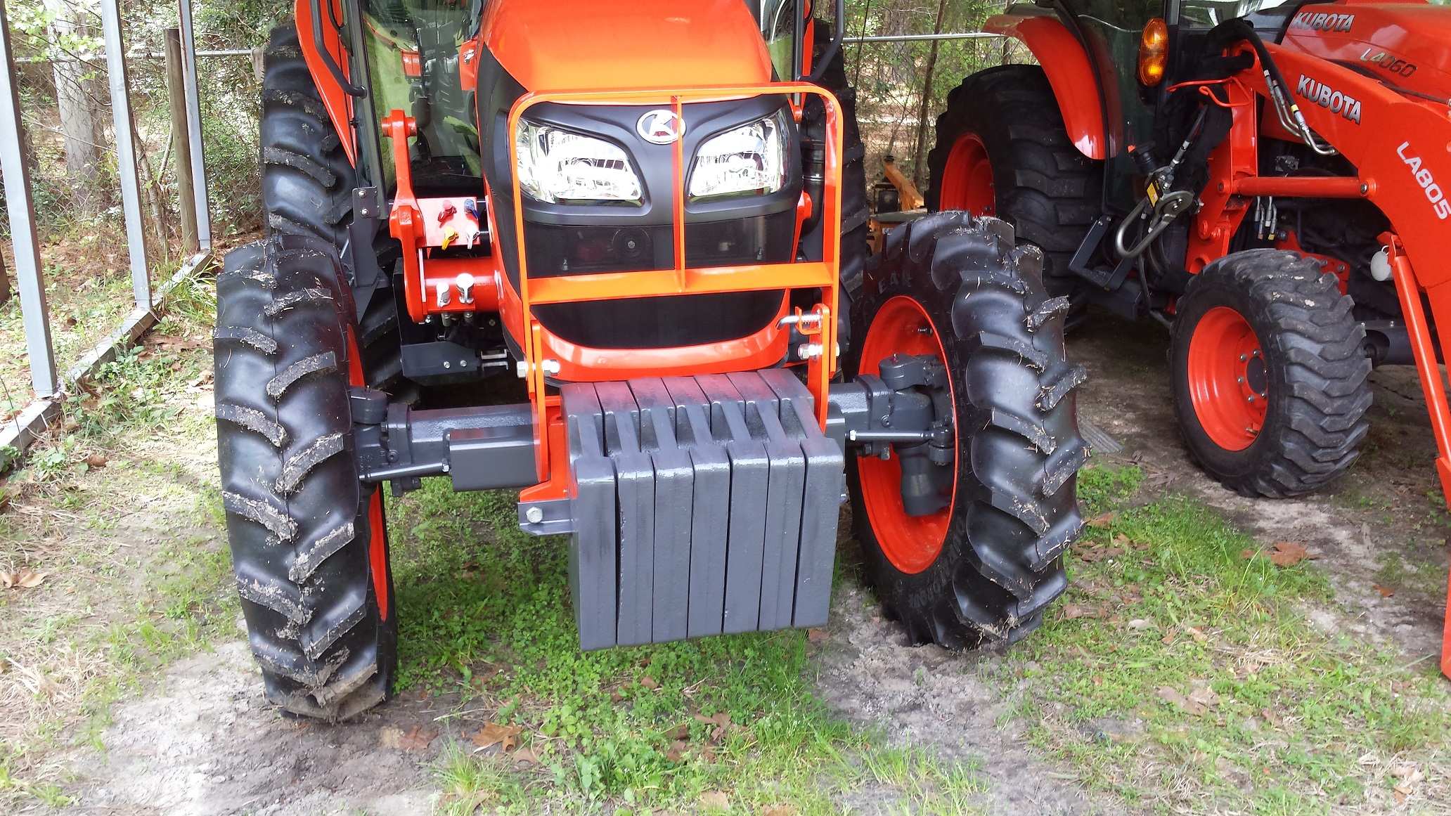 Didn't paint the weights yet but I do have the correct grill guard bracket on and the front weight bracket painted and bolted on. Kubota has a genius about them with the way the bracket nestles in between the grill guard bracket. It looks great, wastes no space and you can have both the grill guard and the weight bracket on at the same time and still put the loader on.