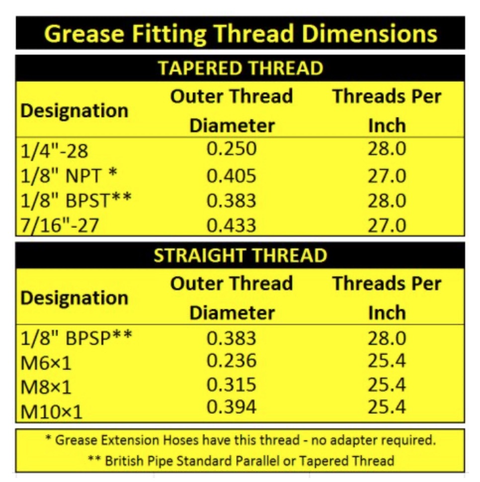 Here's a nice chart I found online at GreaseExtensionHoses.com.