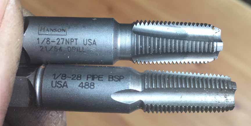 Notice the tip of the BSP thread is smaller and the taper is steeper than NPT.