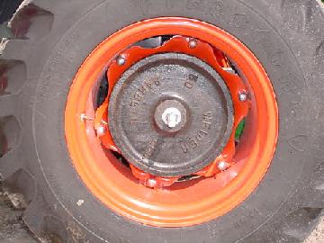 Valve stem guard was added by the Kubota dealer... a short length of iron pipe welded to the wheel...