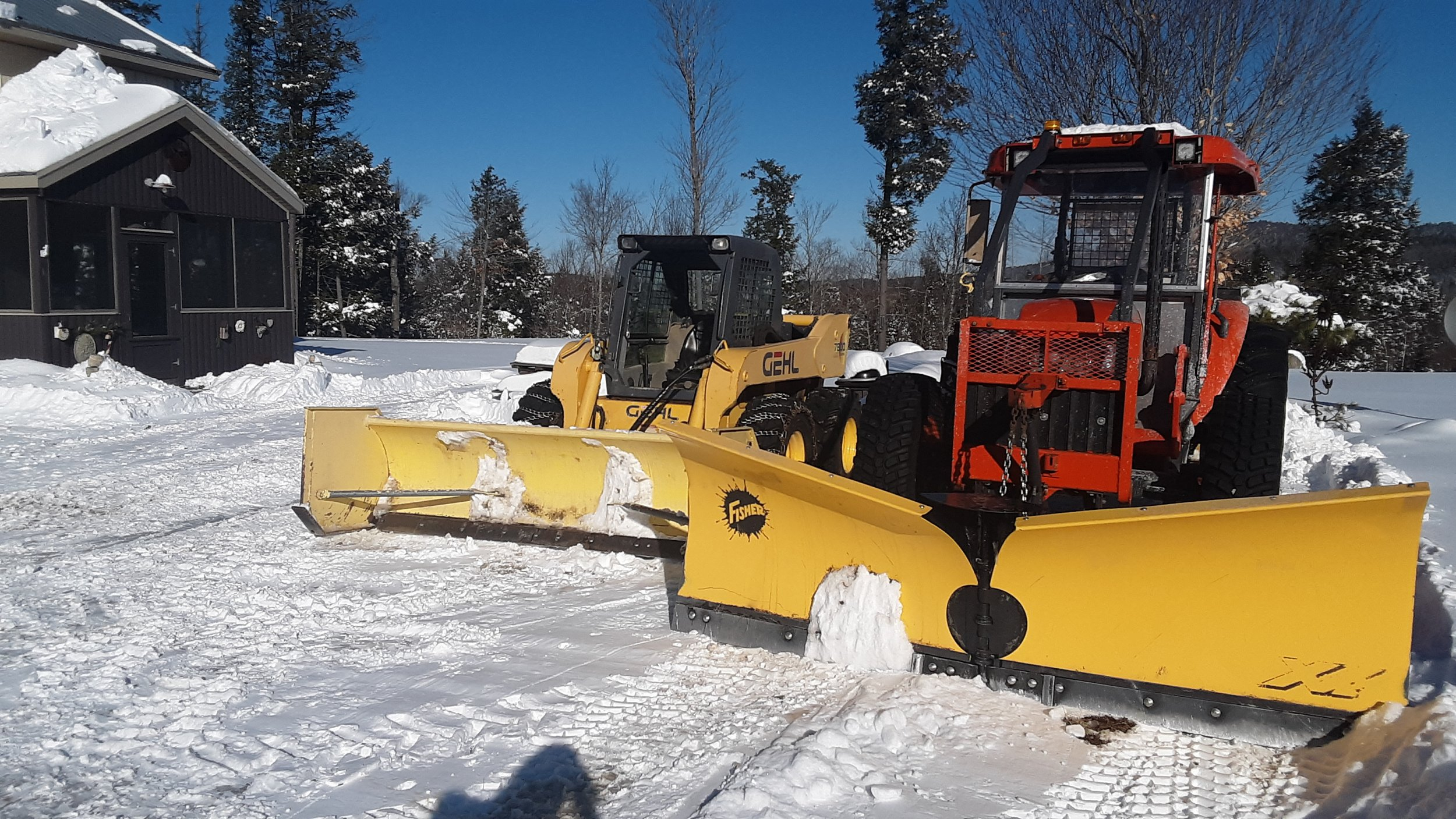 A bucket with no edge tamers is going to get gravel everywhere. Plus, a bucket gets packed with snow sometimes. The back drag option on snow pushers do not box in the entire top. They just have a cross bar with a rubber edge many times and add wear shoes. I bet a person could add 2 angle iron pieces with a 2x6 plank to use on the farm if they already had a pusher.