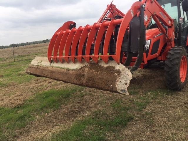 These concrete footings are about 16" deep and 8" wide and up to 16 foot long and buried about half way into the ground. The grapple had no time grabbing them but I did lift the back of the tractor off the ground a couple of times even with loaded rear tires and a 1200 pound box blade on the back (the Kioti loader is very stout). I have also used it to pull up about 50 old T posts from an abandoned electric fence and it made the job quick and easy.