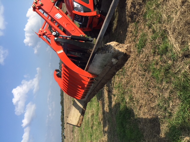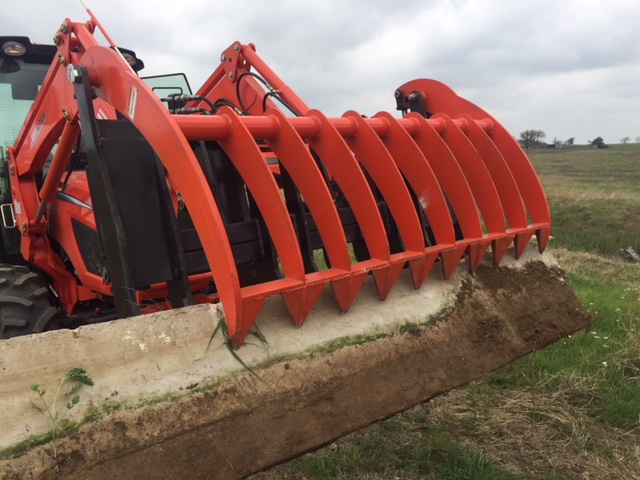 I bought an Armstrong Ag 72" 6.5" spacing brush rake grapple when I bought my Kioti RX7320 and finally have time to do a mini review on it. This one is heavier than the Everything Attachments style at about 850 pounds but it does have a heavier top gate. I have mostly used it for scraping up cattle feed areas (caked together crap and stomped in hay) and digging out old concrete footings (totally different things) and it has worked well for both.