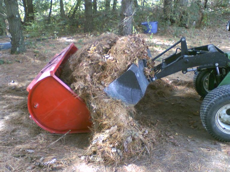 </font><font color="blue" class="small">( Grapple bucket is great for working with trees and brush. It is many times faster than trying to chain things to a bucket and move them. I'd caution you on trying to pinch logs with the fangs and move them -- you can bend a fang.