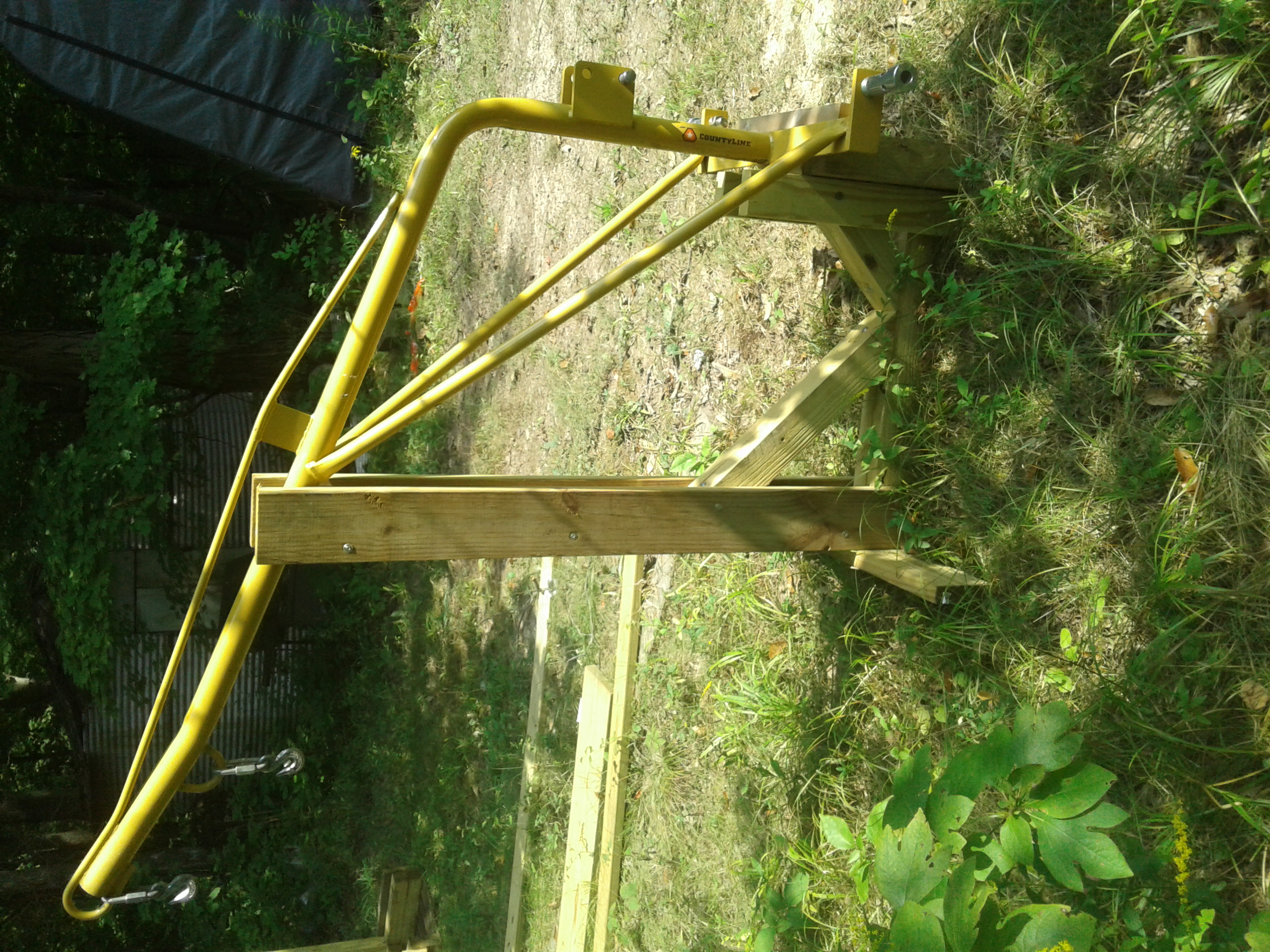 Big ugly contraption I built to store my Ditch Mower/Shredder. It's at leas six feet square.