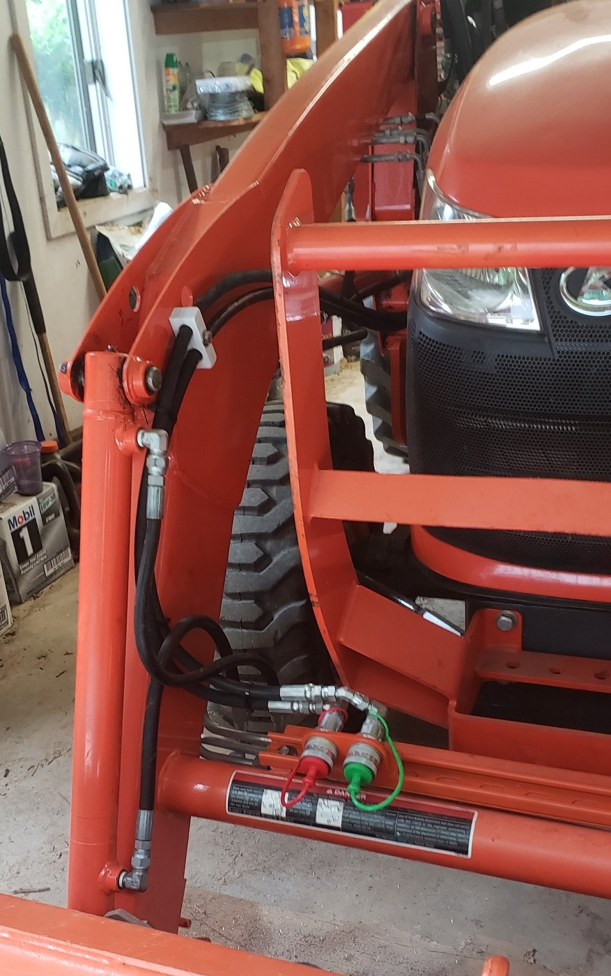 Good project if you are switching loader arm attachments often enough. The tinker-er in me thought about doing that, or rather, how I would do it, but since I swap stuff on the front maybe once every couple years, I got real and forgot about it. In fact, since we never have snows anymore, the bucket pretty much lives there.