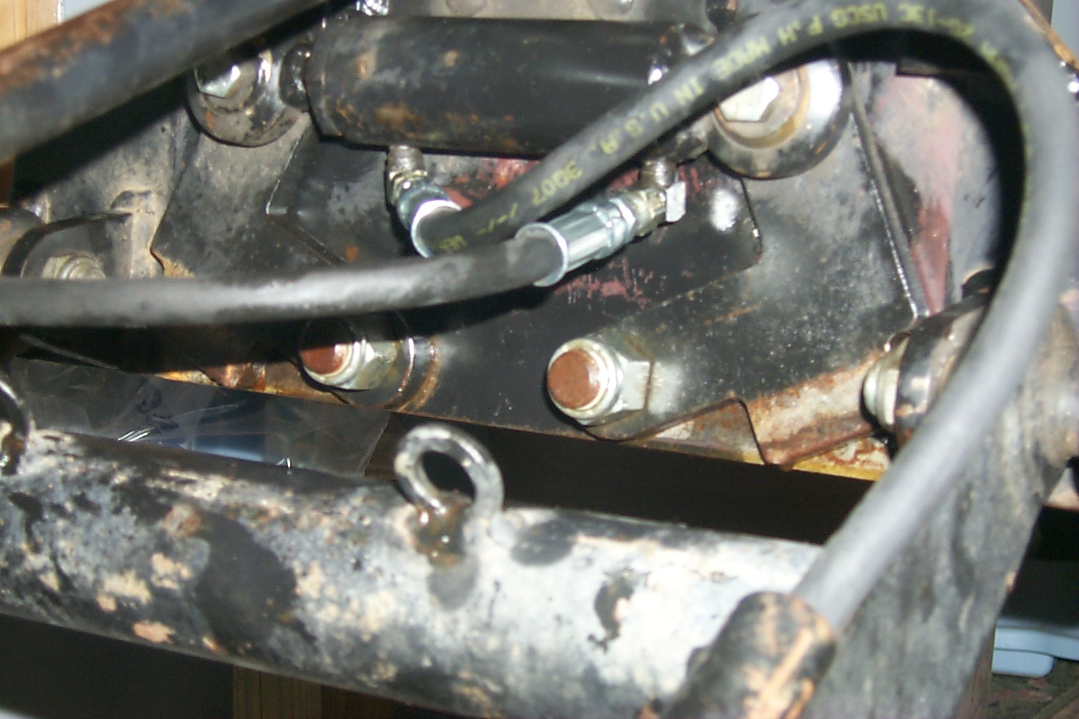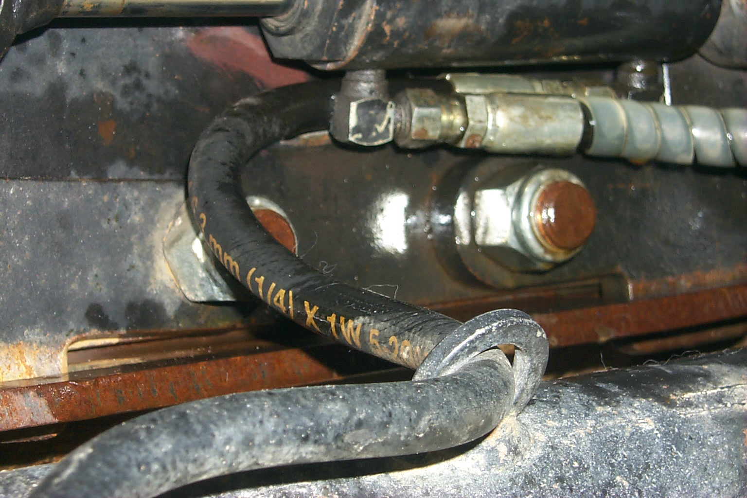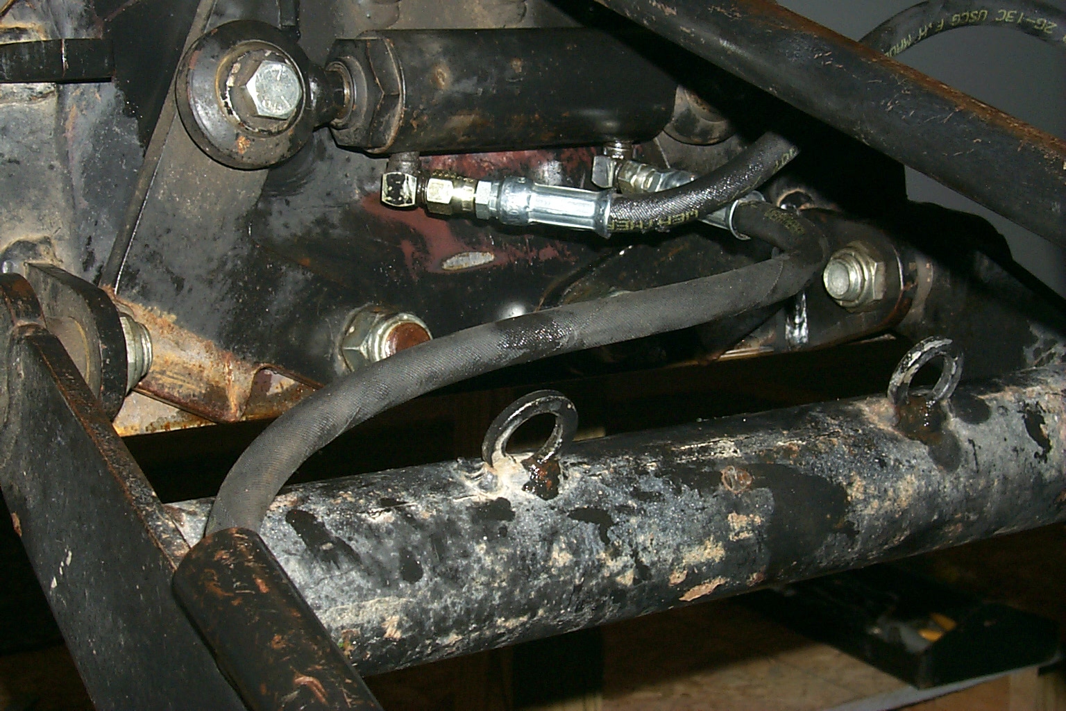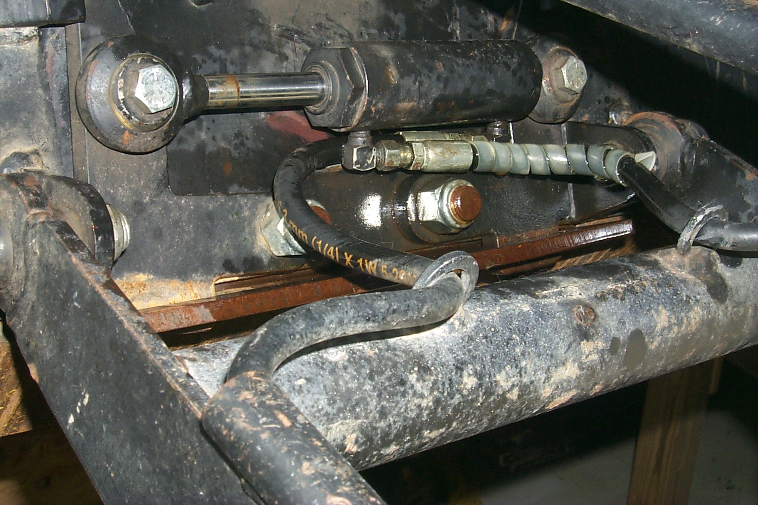 Just yesterday as I went to do the chores above, I noticed what looked like a slice in the hose that connects up by the cylinder that locks the QA. Upon a closer look, there was, and it was from everytime the lock was openned or closed the connection for the right hose, rubbed across the hose on the left side.