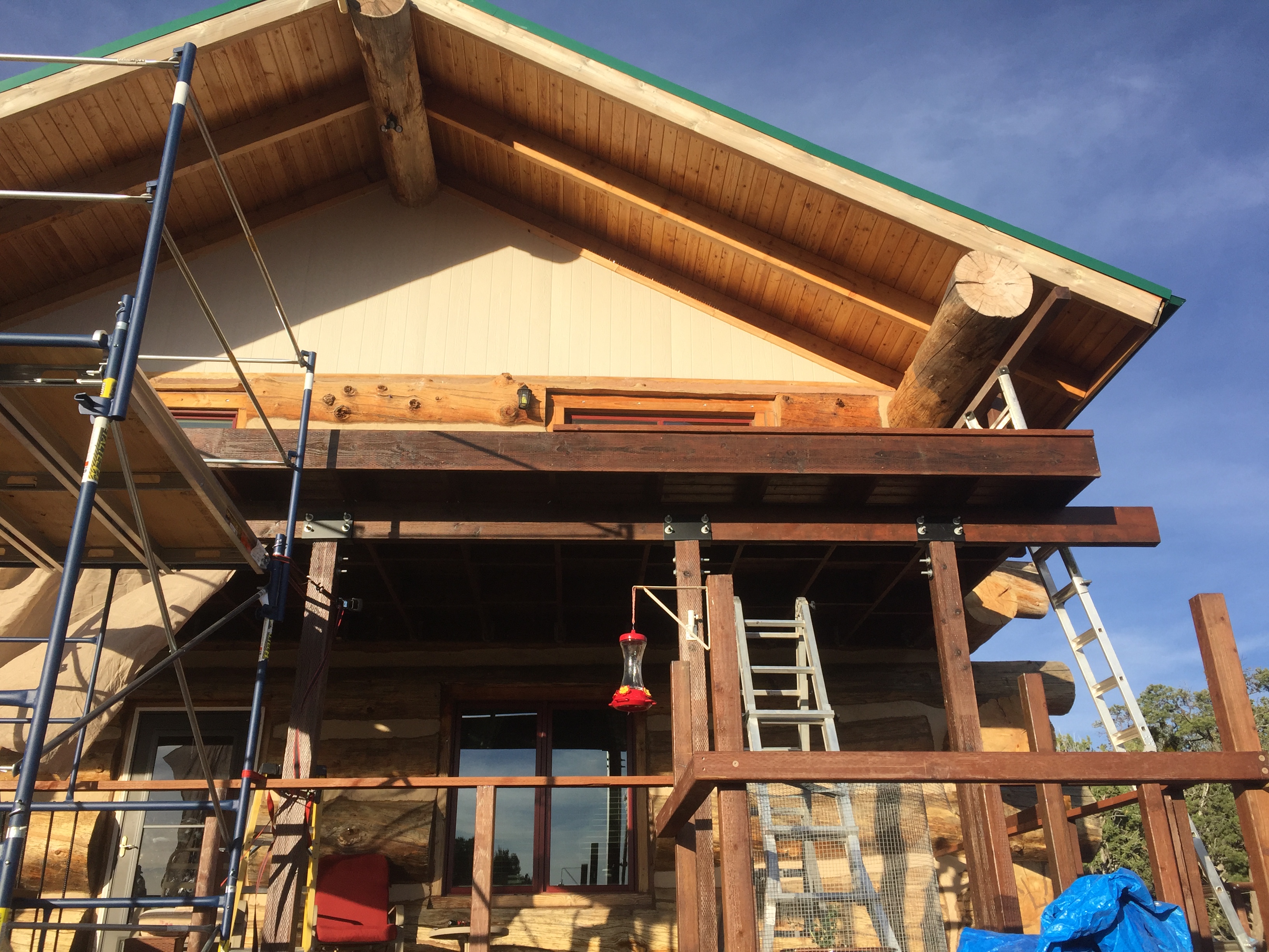 It was a challenge eating those 16 foot rim joists up there by myself.