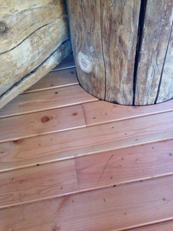 The plans have the upright support logs covered up with walls. I want them exposed, so I moved the walls about a foot.