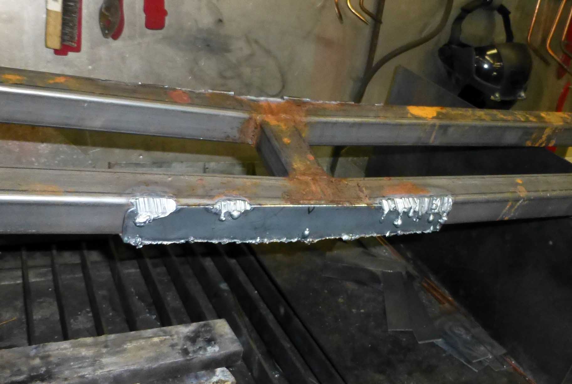 The 1st photo shows the frame and fish plate that reinforces it. So I cut off the plates and cut the tubing and bent it so as to give it more of an angle. The 4th photo shows the blades push plate end that developed a strange bend to it. Its 1/4 in thick and I have no idea why it would bend like this. The 5th one shows an extra 1/4 plate I added to keep that from bending up again. The last one is the after the new fish plates were added, then the frame was blasted and primed.