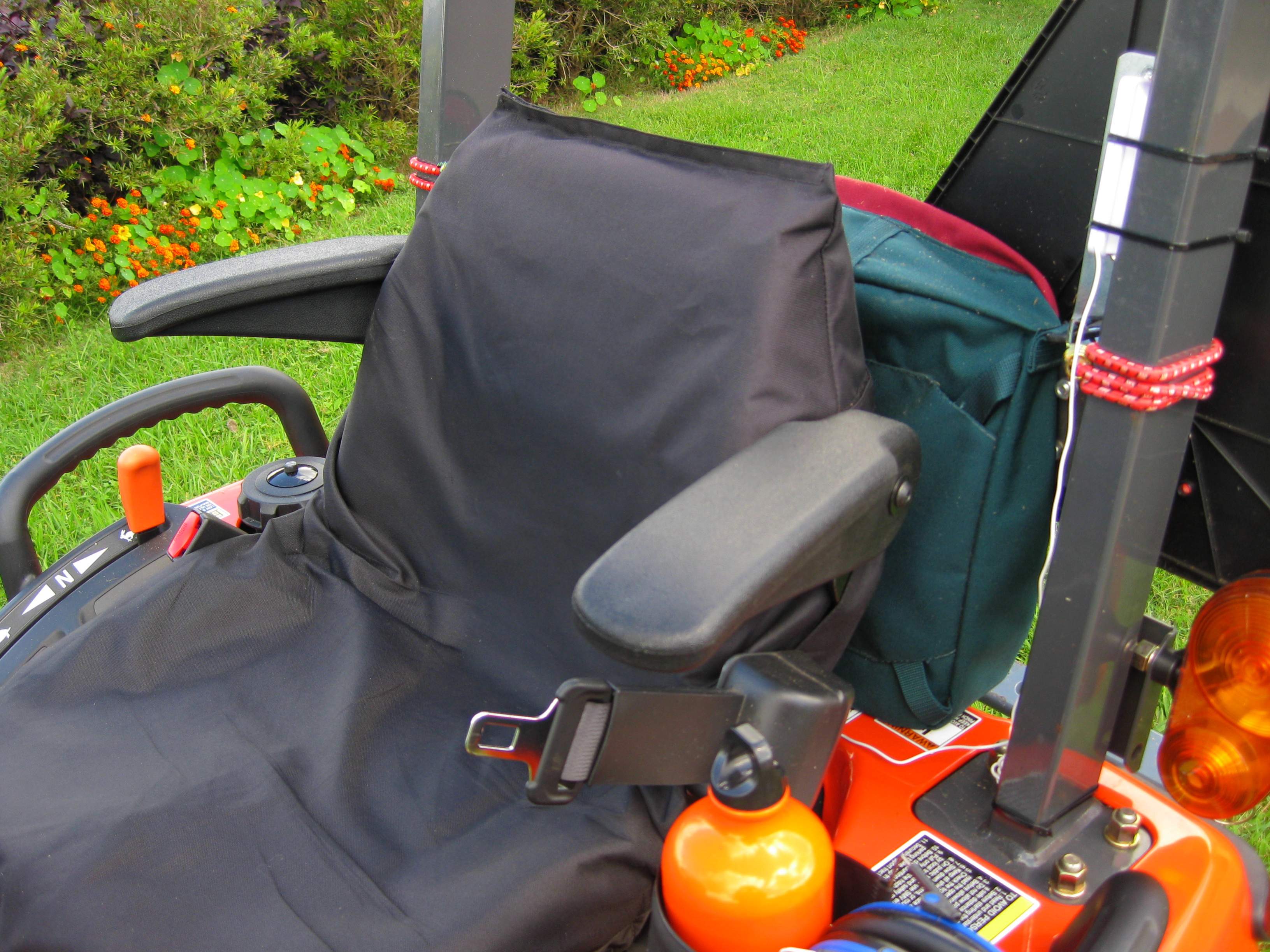 I thought I would share some information for any of you BXpanded Tool Pouch owners that bought them before they were discontinued. The tool pouch can still be mounted on the back of the seat if you also install the B/BX arm rests. I held off on buying the arm rests because I didn't think the two could mount up together. Really needed the arm rests so I took a chance and they do work together.