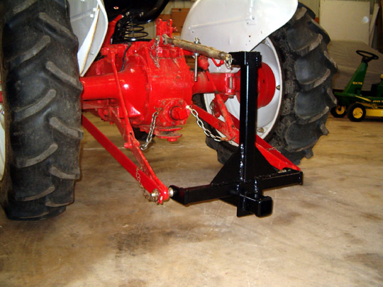 I have seen a 3 pt adapter for the tractor, where it has a 2" ball on it and you back up and lift it with the three pt and drive off then just drop the 3 pt and your done