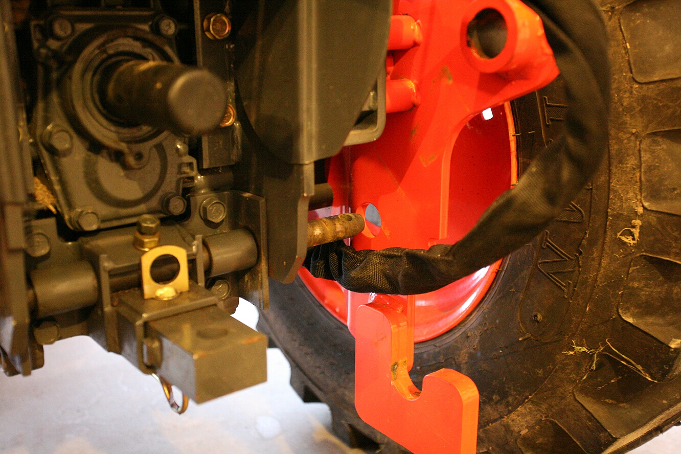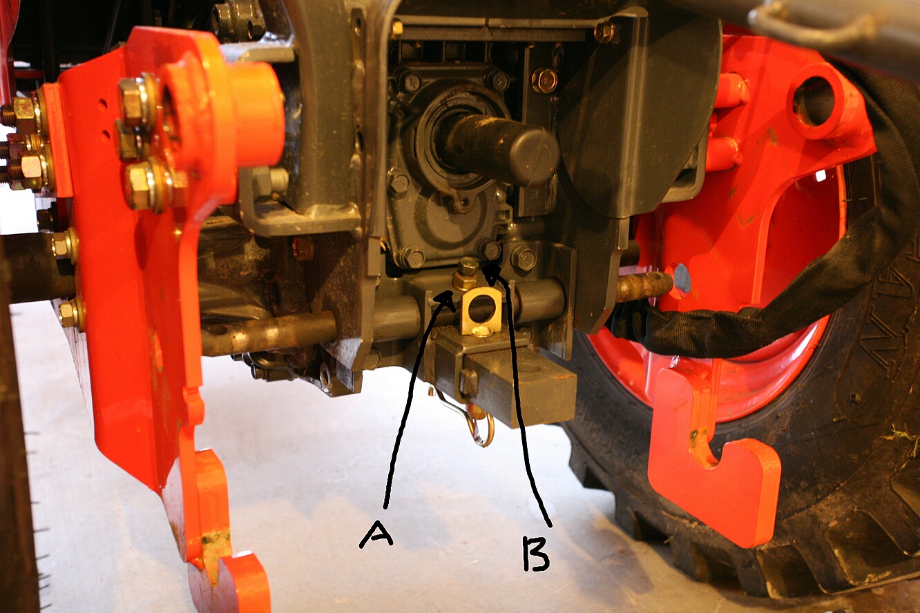 There are two holes in the sub frame, it almost looks like they should have replaced the very lower 3pt mounting point with a longer metal rod that extended through the frame?