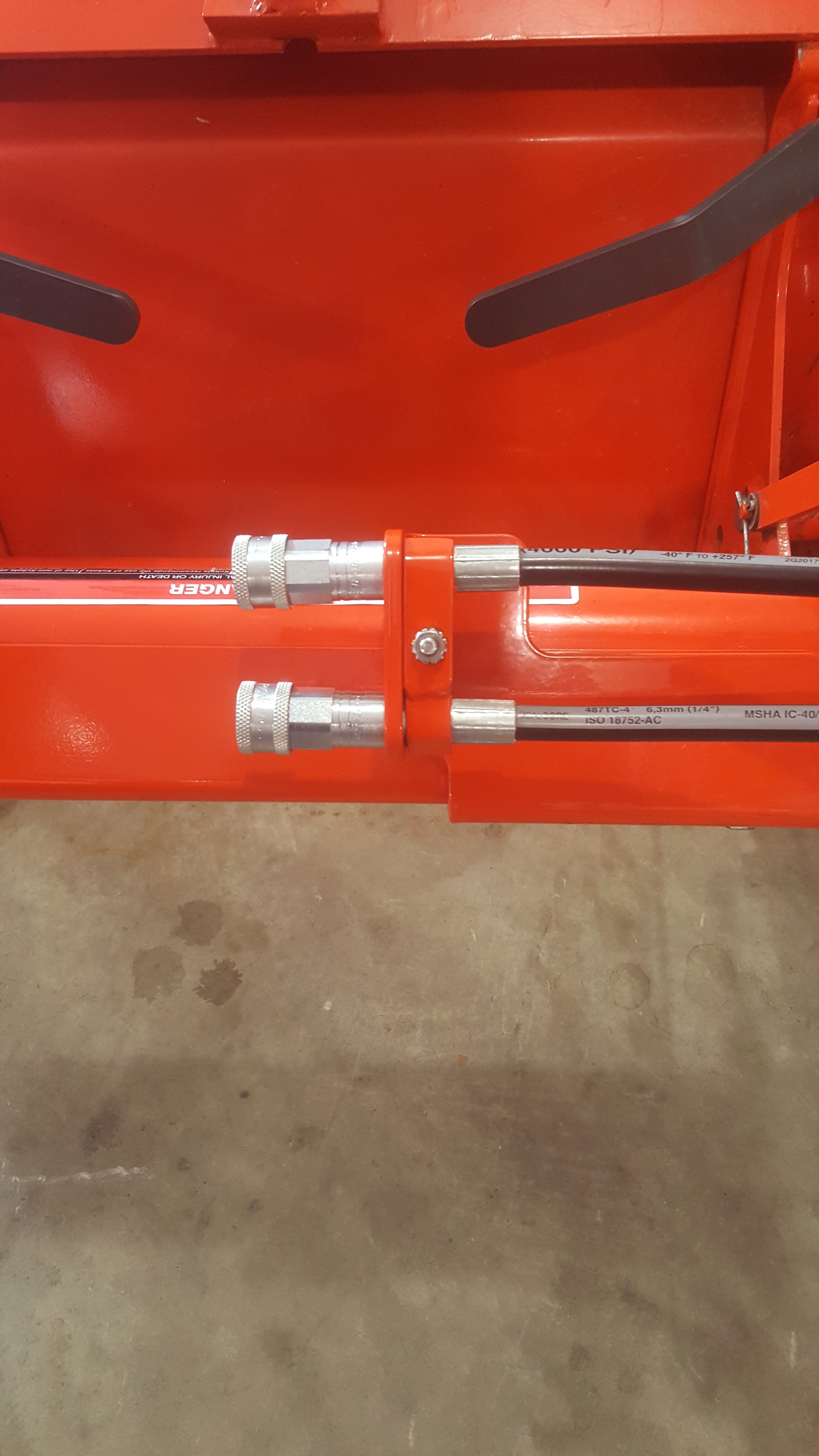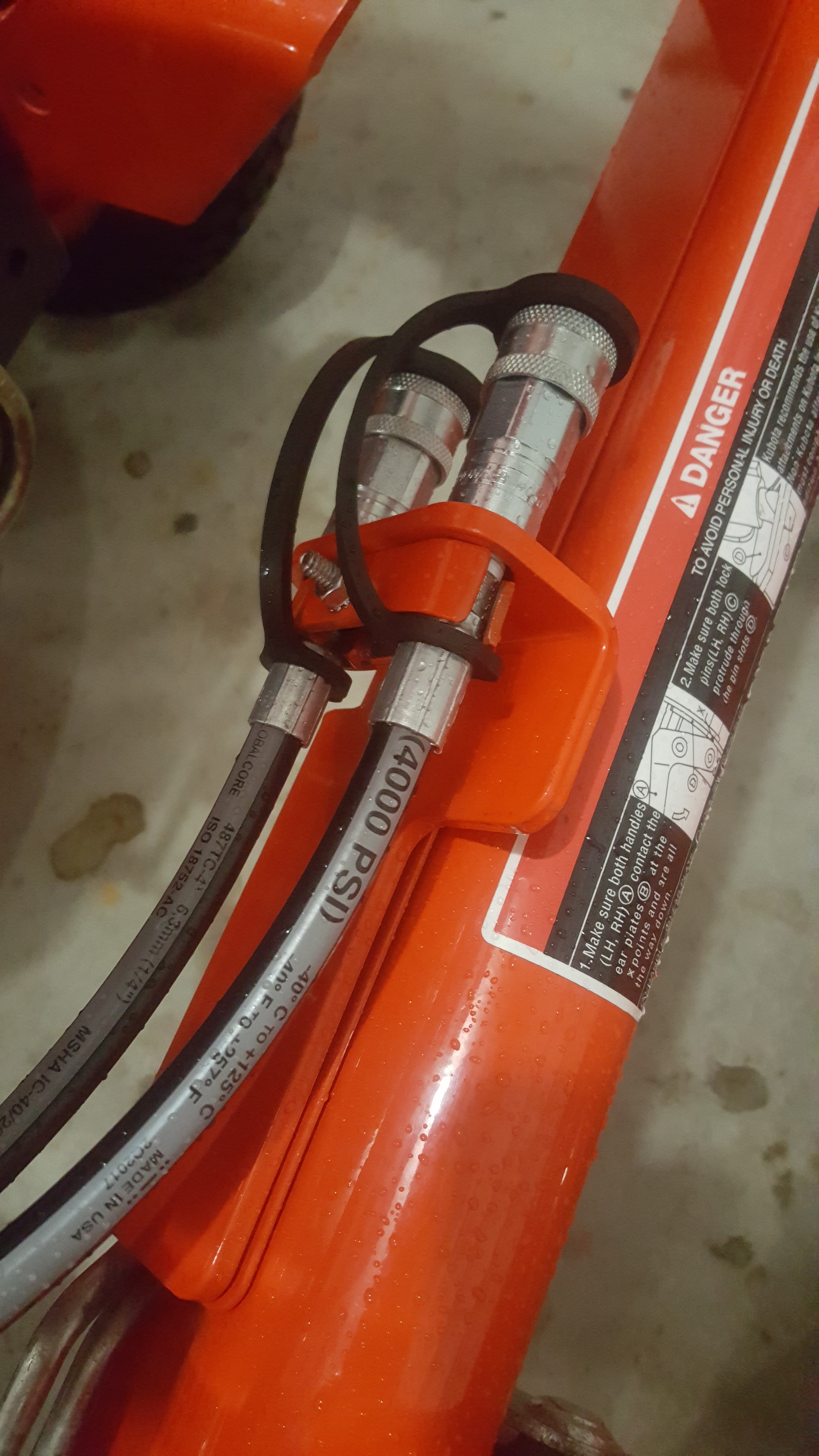 I bought the factory Kubota mounting bracket that bolts to the loader crossmember. I had to fab up a bracket to hold the lines tight in the bracket. Finished it off with rubber plugs for the couplers. Final piece of the puzzle.