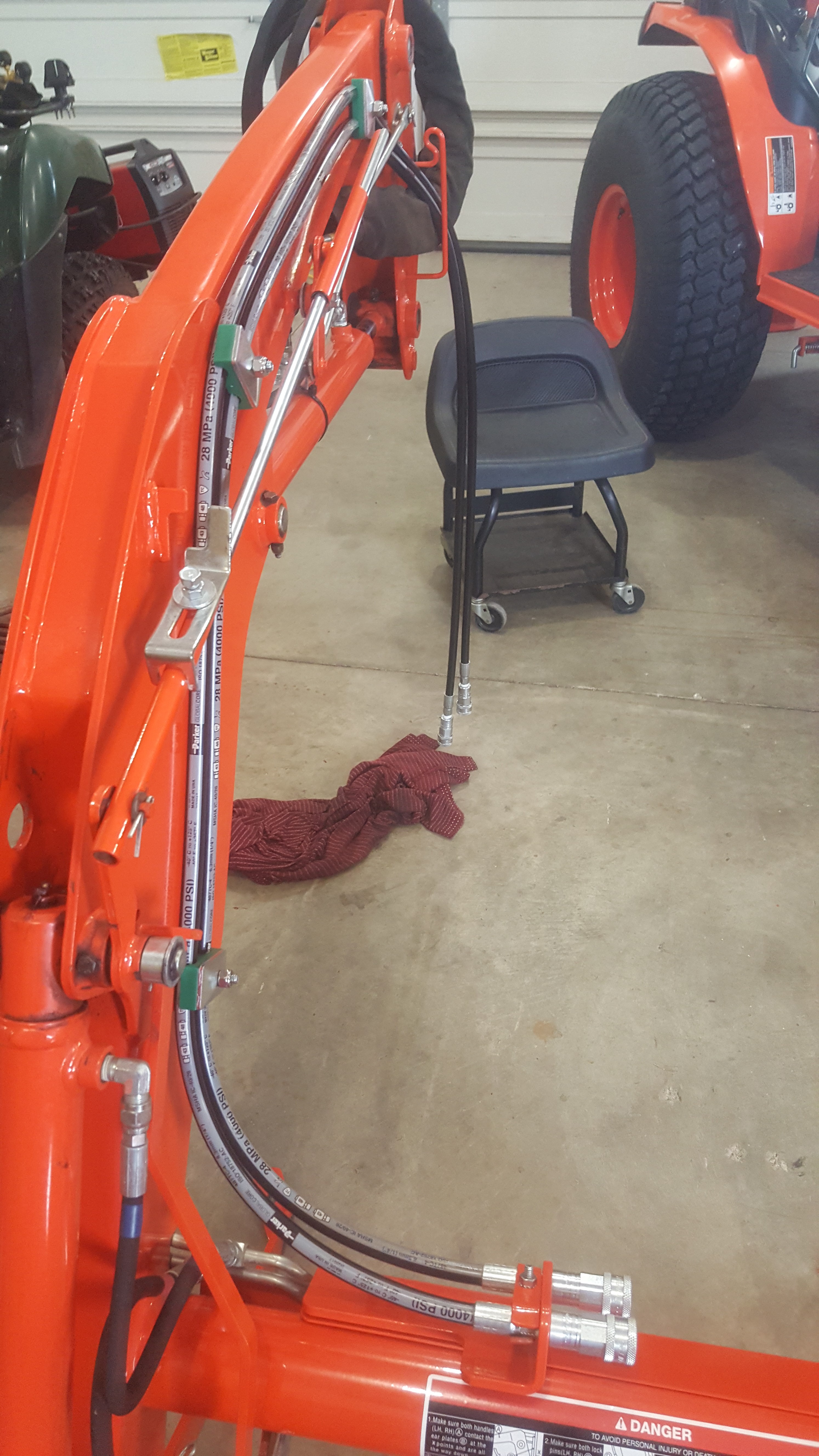 Pic of the quick coupler connection, tying in to the lines I had already ran under the right floorboard. Far enough away from the loader quick couplers, and tucked up out of the way.