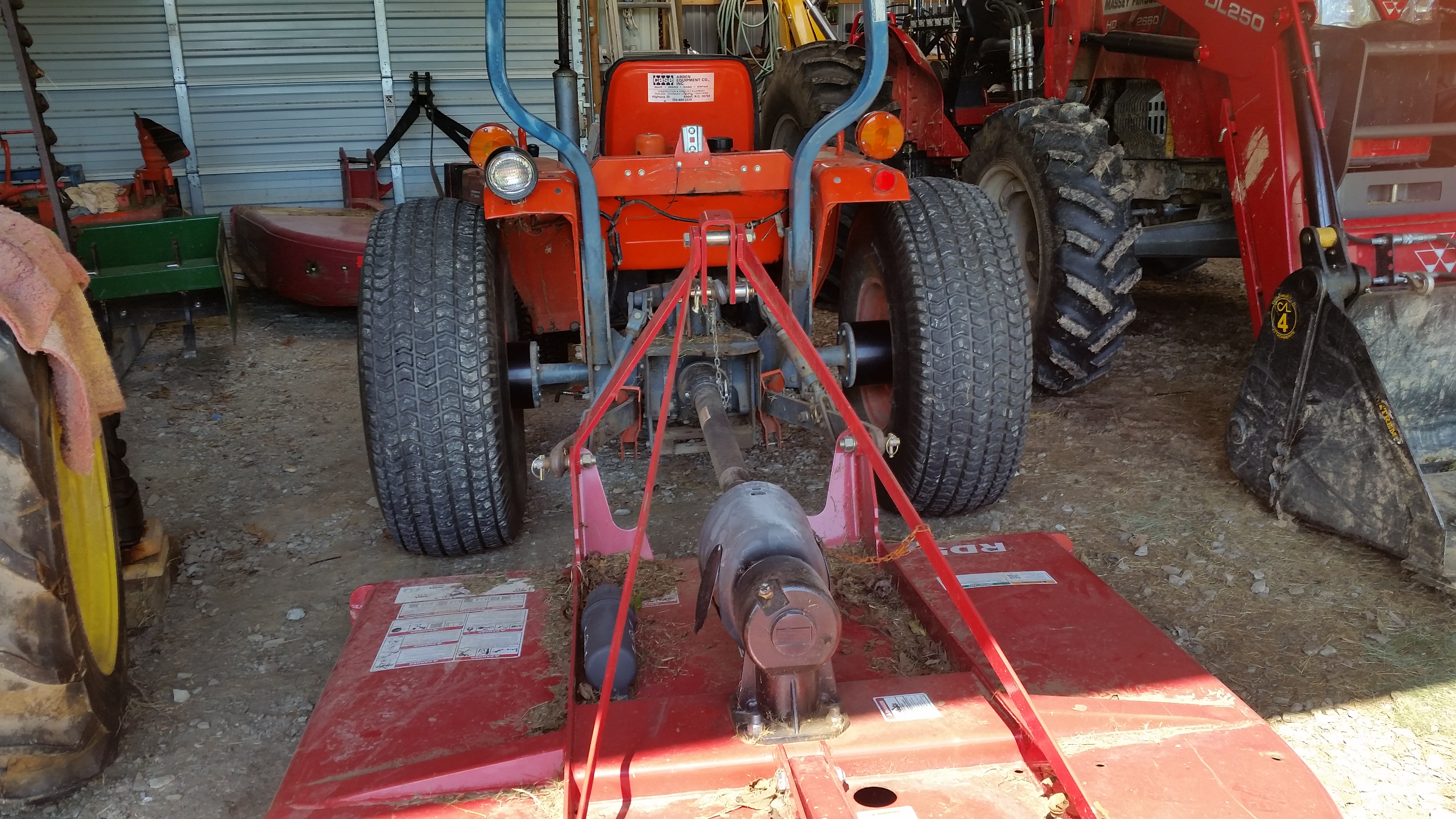 Yes, the spacers were installed when the tractor was assembled. They will never be removed. If in 10, 20 or 30 years my rear axle bearings fail, I'll fix it. I have to have the spacers and I have to have the loaded tires otherwise I wouldn't call it a tractor, I would call it a ball.... As it rolled down my property. I live on a steep slope and my tractor lives on it with me. I need all the low weight and wheel width I can get, that's why I have the B3350SU optional wider tires, spacers and about 400 lbs of Rim Gard. My B2650 is 60" wide at the rear wheels, yours is I believe 53" it 54" with cute little tires, little wheels and no spacers. The attached photos are prior to the spacers going on, the spacers added another 3" to those offset wheels and wider tires.You have been running your 1.5" spacers since new with backhoe? No issues or concerns from your kubota dealer? Really surprised to hear him say to actually remove the spacers when chains would be removed?