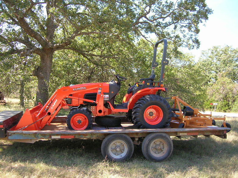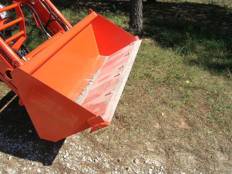 It's here. I'll try to post pictures - never done that before. I love it. The only thing is the salesman apparantly did not know what a toothbar is. He had them attach a removeable cutting edge like you see on larger loaders. Basically it just saves the original edge from wear. It is also reversable, so when one side wears down you just turn it around. I'll try it for a while - probably add a toothbar later.