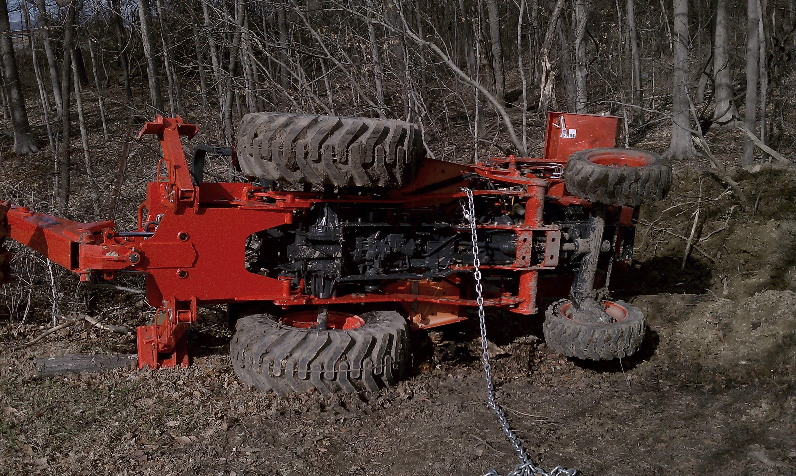 Glad you weren't hurt. Accidents do happen, but these machines are fairly stable. I live on a mountain property, with more sloping land than flat, and have yet to even get a tire off the ground in 300 hours on this machine and another 50 on a couple of rentals on this property. May be because way back in my early 20's, I picked up the entire back end of a Yanmar 3 feet off the ground after picking up a boulder in the FEL that was apparently a bit too heavy. :eek: