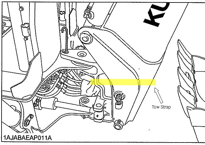 I have B3200 that I use with a FEL and Backhoe installed. Sometimes I have the need to attach a tow strap to drag a log out of the woods. The BH76 Backhoe blocks access to the drawbar, so I need to attach a nylon tow strap somewhere on the backhoe. The attached image shows where I think I can wrap the strap around the base of the boom. The boom would be locked with the travel pin. Any problems with doing this? Where do others attach a tow strap/chain when the backhoe is installed? Thanks for any information.