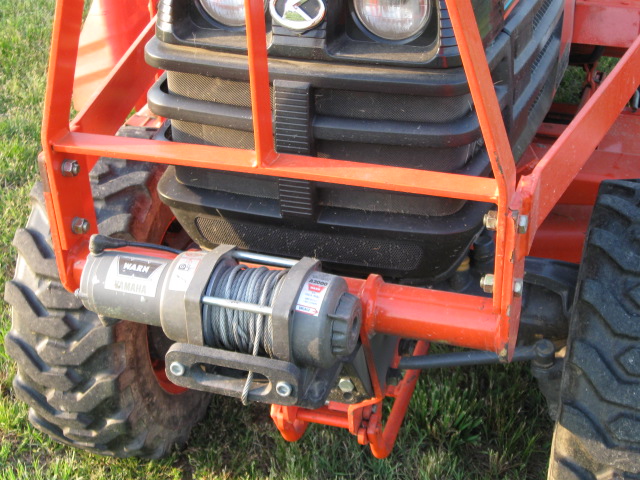After I bought the winch I had a friend of mine to make the bracket out of 1/2" steel.It was simple to make. Just make sure that the top part of the bracket where the winch mounts on clears your bucket.Mine clears about 3/8" when lowering the bucket to the ground.Once the bracket is made match the holes with the holes on the front of your tractor,drill and bolt on.