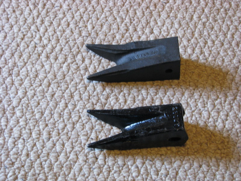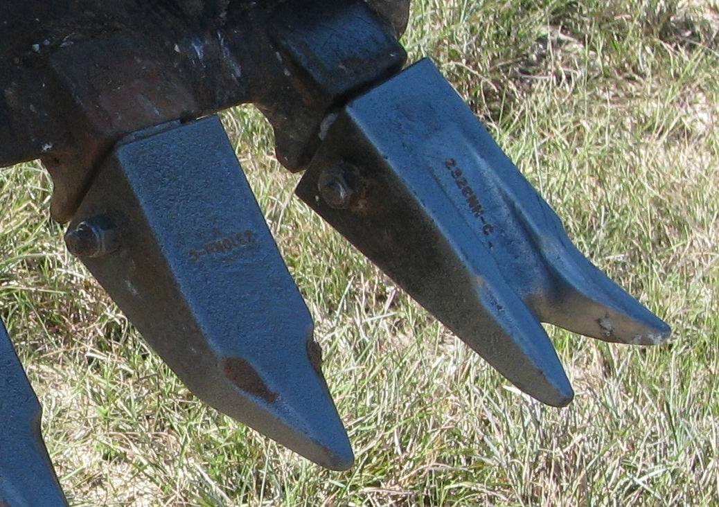 What I'm wondering is if anyone is as surprised as I am to see the kind of wear I am getting on these teeth? I've ordered spares that are supposed to arrive by UPS today. For digging in dirt the current teeth are fine. For caliche, the sharper and longer points sure do make digging easier. I've found a source for the twin point teeth for a little over $11 each when bought in sets of 5, and the single tooth models are a bit cheaper. However, spending $50 on teeth in 50 hours seems excessive. The caliche is very abrasive.