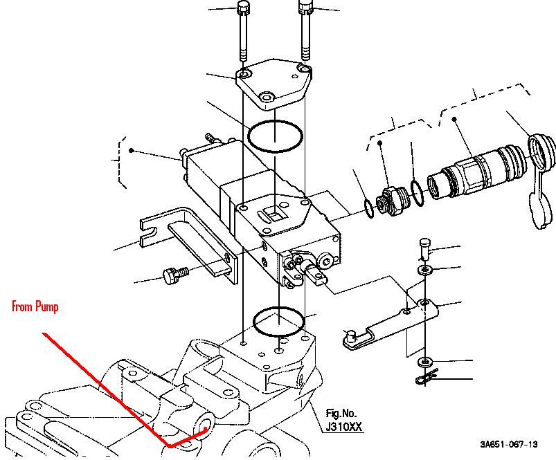 Orangeman2009: I'd splice it here. Or somewhere between here (red arrow) and the pump and run it to the backhoe valving and then return it to the other end of the splice. 100_0377.jpg