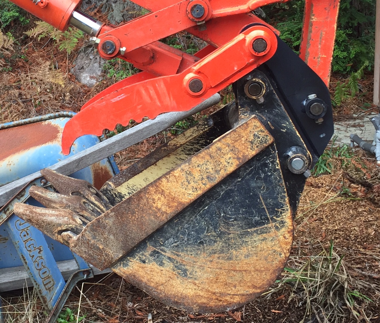 I knew from my own planning that the quick coupler would change the relationship between the thumb and bucket. Instead of closing completely at the teeth, there is a gap. I don't think it will make any difference in use but will have to work with it for a while to be sure.