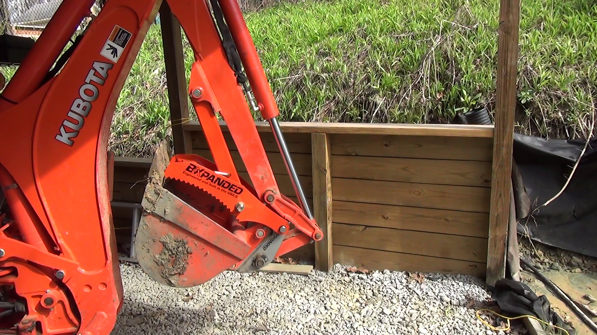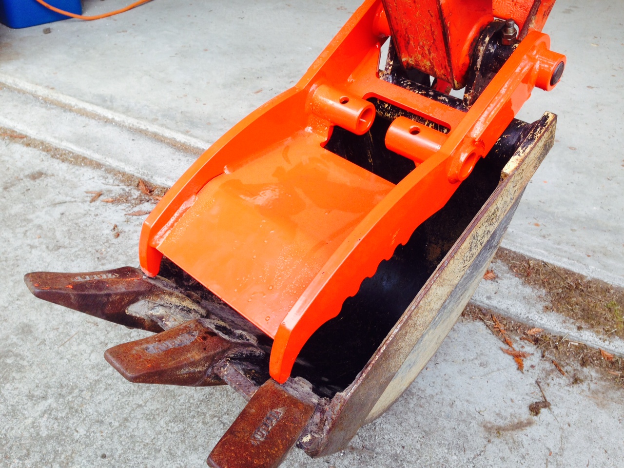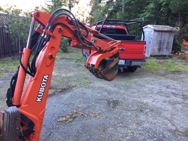 After a while I added a quick coupler to the backhoe so I could change easily between digging bucket, landscape bucket, ditching bucket, and root ripper. That changed the relative positions of bucket and thumb and messed up the thumb closure.