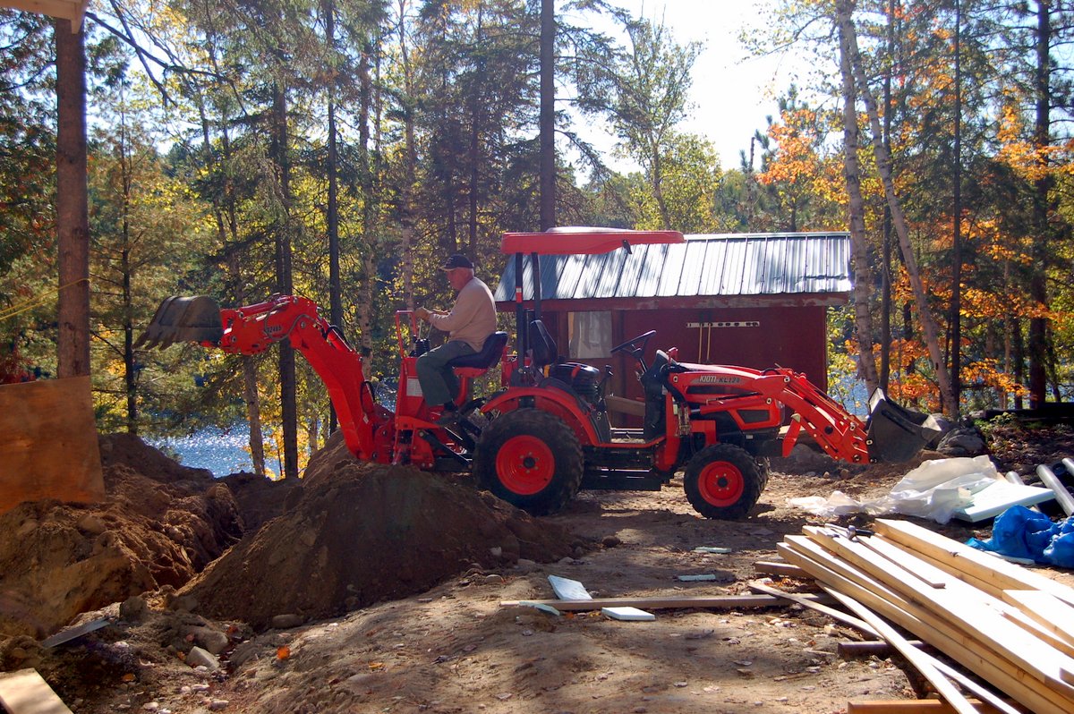 Kioti CK20S with a well used 2465 Backhoe and home made thumb.