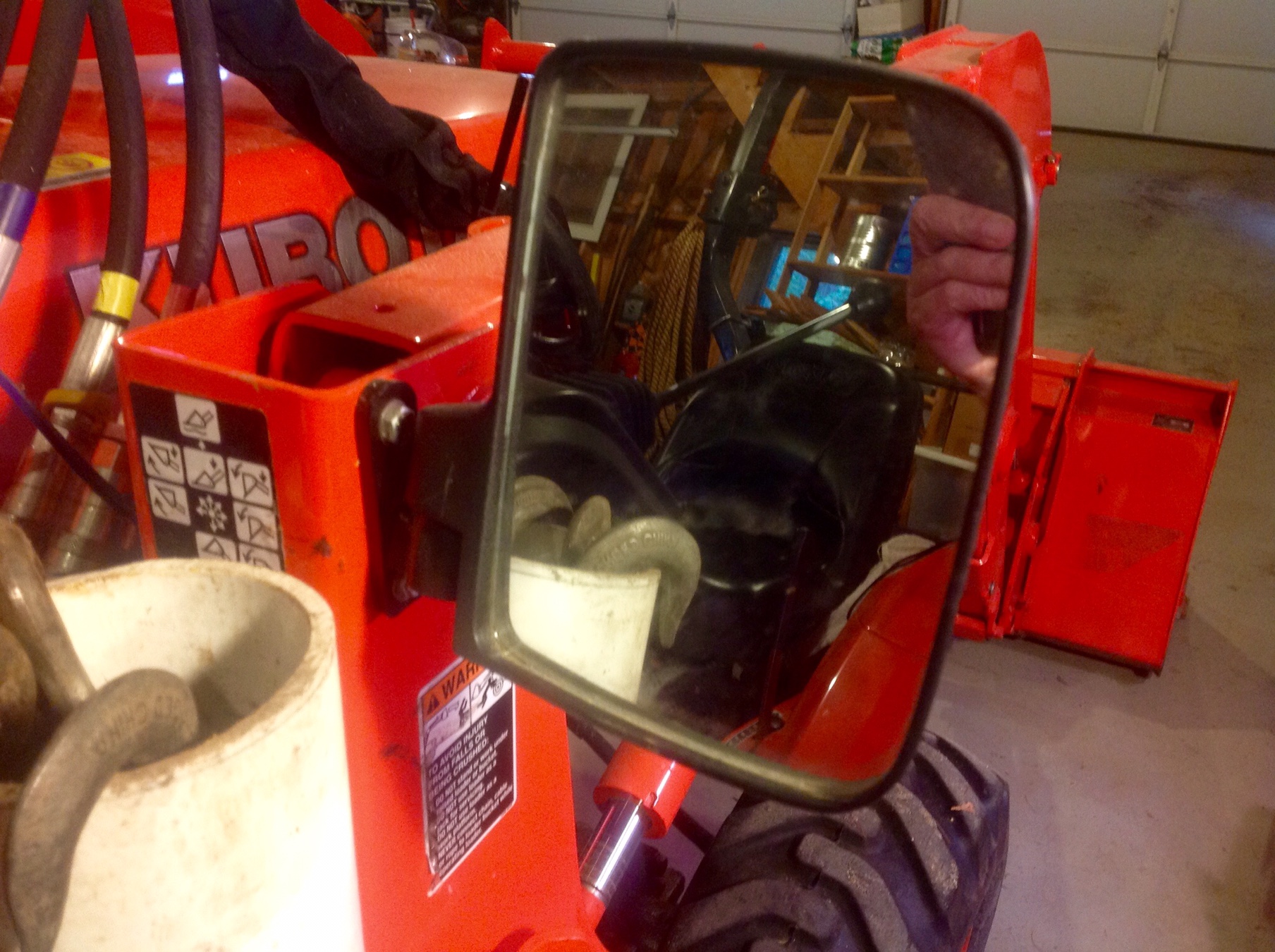 I have tried to mount a mirror various places with no satisfactory results. I tried on the roll bar and maybe mounting on the hood or either side of the hood. If anyone has attached a backup mirror I'd love to hear where you installed it and how. I am 71 and have a difficult time turning my head around when backing up. My tractor has front loader and backhoe attached. Thanks for any advice. Pochie