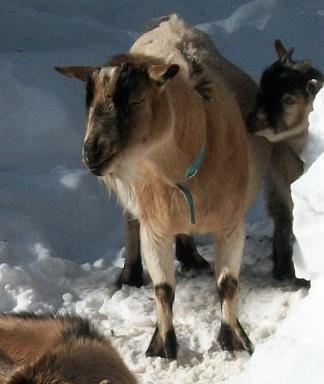 The girls milk her daily her milk is up. The buck kid behing her is her kid who we sold for a 4H project. They have asked how to dehorn him, he can't have horns for their little girl's project.