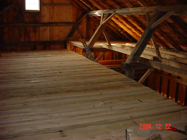 Tuesday was a big day for us. We finished up the north wall siding and put in the 3rd floor new floorbaords. I am presently working on the 12 foot 16 light front window that goes over the barn doors. I was hoping to get it done for the wife for Christmas. But I don't see that happenig right now. If it stays warm I may start on the south side of the barn. Otherwise, it is on to the interior of the house for a complete re-plaster, insulation and re-wire job. Wish me luck. It may be a cold winter outside and I'll be very busy inside. It is a good thing the house will be empty.