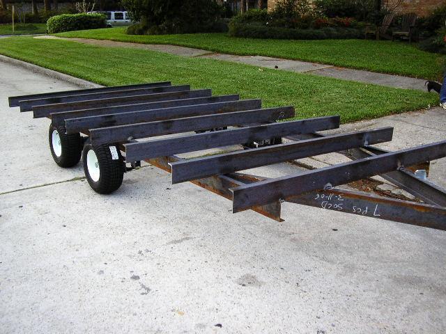 From the pics it looks like you use the same C-channel for crossbars and main frame runners ? If so, you could easily do with half the size of the crossbars and still have high technical reserve. We used to use 60x40x3mm tubing as crossbars for trailers up to 8 ton