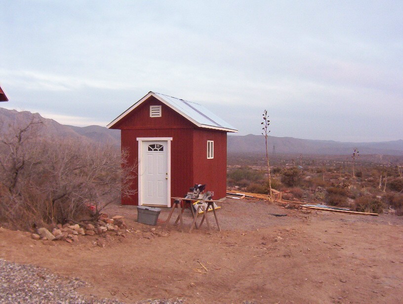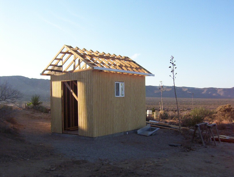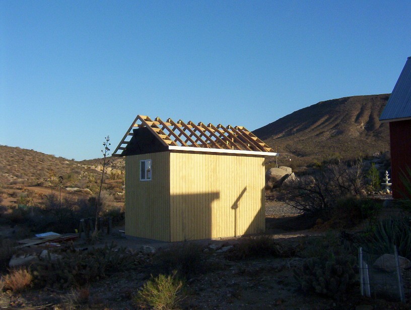 I finished the roof sheating and did a little tractor work on area around the building. Next is the roofing, vent pipe, door installation, paint and window trim.