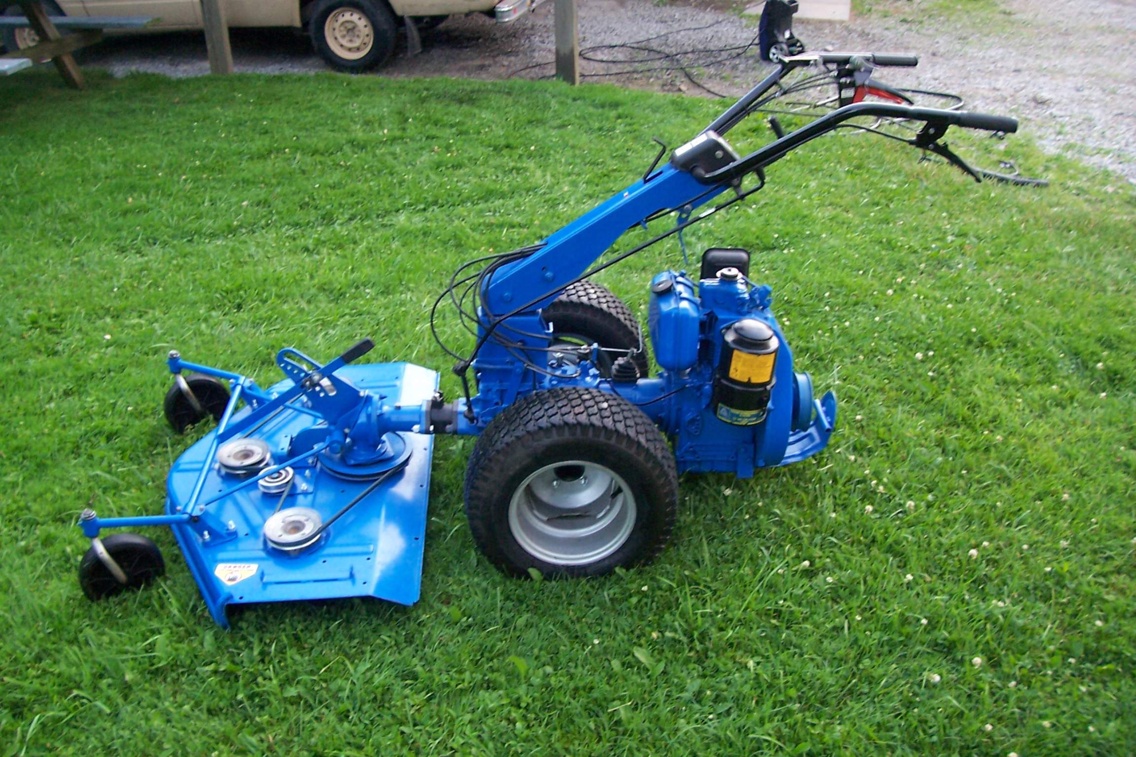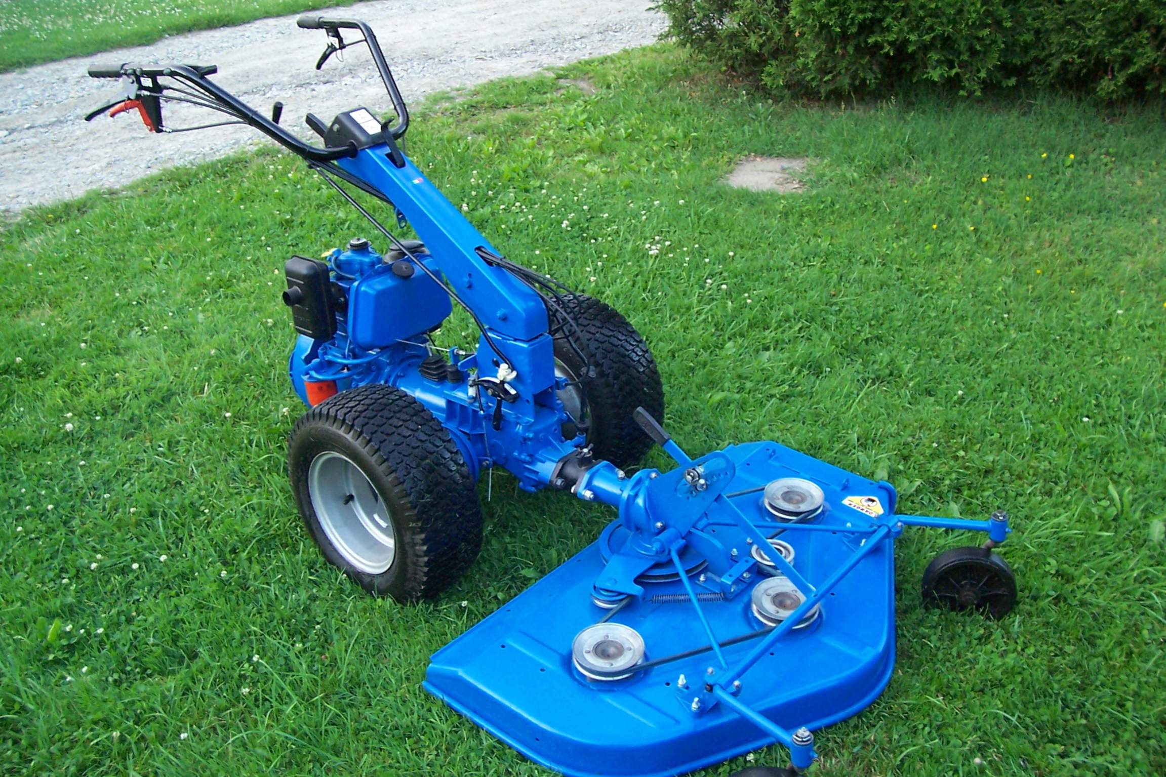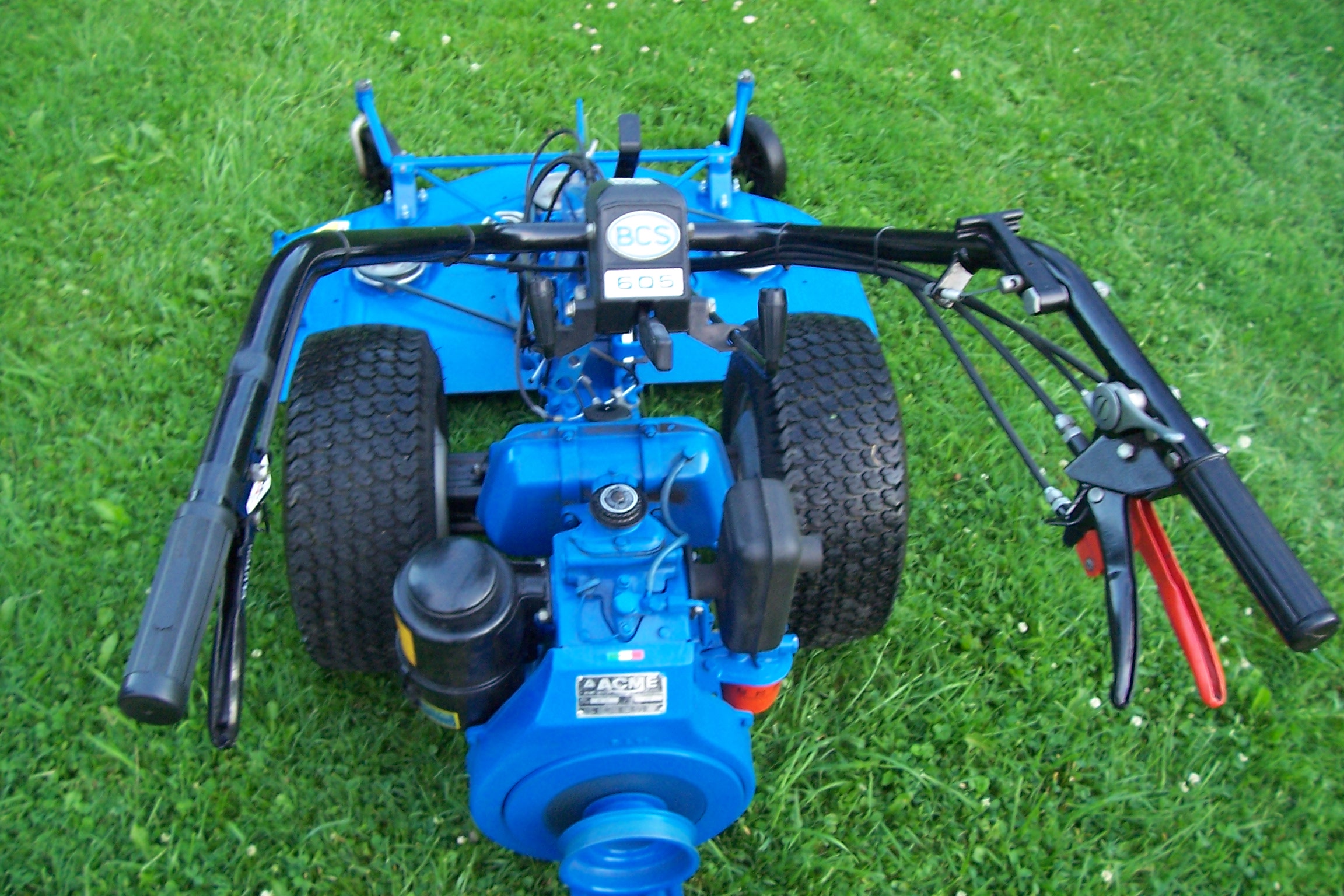 Got to use the 40" lawn mower attachment and it works well. The 605 has really nice gearing for mowing application. The instant reverser lever is fast and convenient but I can see why they changed the design, If you don't hold the clutch in all the way the reverse will grind. But it works good anyway. As for the mower deck I welded in new plating because it was starting to get holes in it. The cut tends to vary a bit as there is a pivot that allows the deck to stay level when cutting height changes. It likes to gouge on uneven ground but not a major thing i guess. The 8hp Acme diesel has awesome torque, It wont stall when the blades are engaged, and doesn't bog down in high grass.