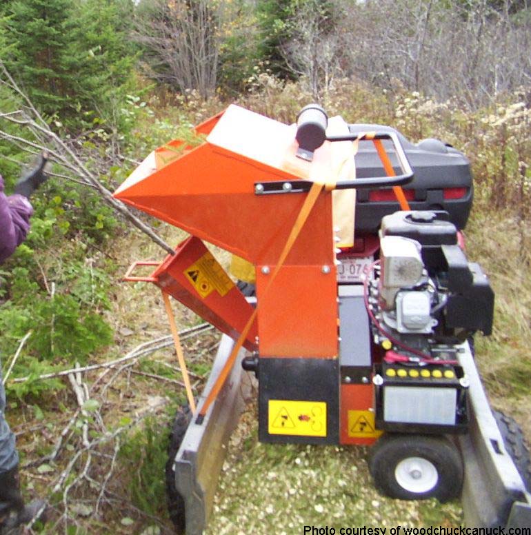 Oh, it can spew out finely cut chips from here to kingdom come. But the chipper opening (down at the bottom) was so small the owner could not put some modestly branching limbs through it without first cutting off some of the side branches. In addition, even though he said he had just turned the blades around so they presented a newly sharpened cutting edge, the self-feed did not seem to work all that well. He had to force some of the branches in a ways to get them going.