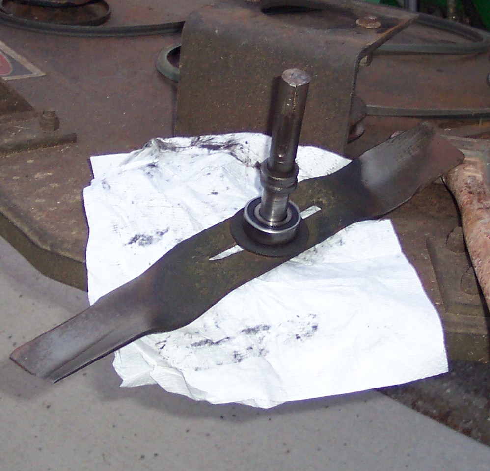 Lifted mower deck up to check to see if there was any "play" in spindle shaft...THERE WAS!