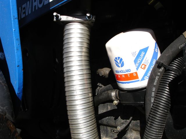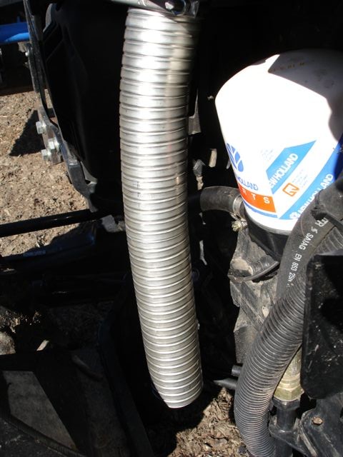 All good questions. I assume NH engineers dumped the exhaust at that site (under the left side step) as a "compromise". I wonder if I take the pipe to a muffler shop if I can get a new pipe that dumps straight down at the same site as the bend? I wonder of being dumped straight down would blow alot of "dust" into the air? Questions and more questions! At least the pipe would be less vulnerable.