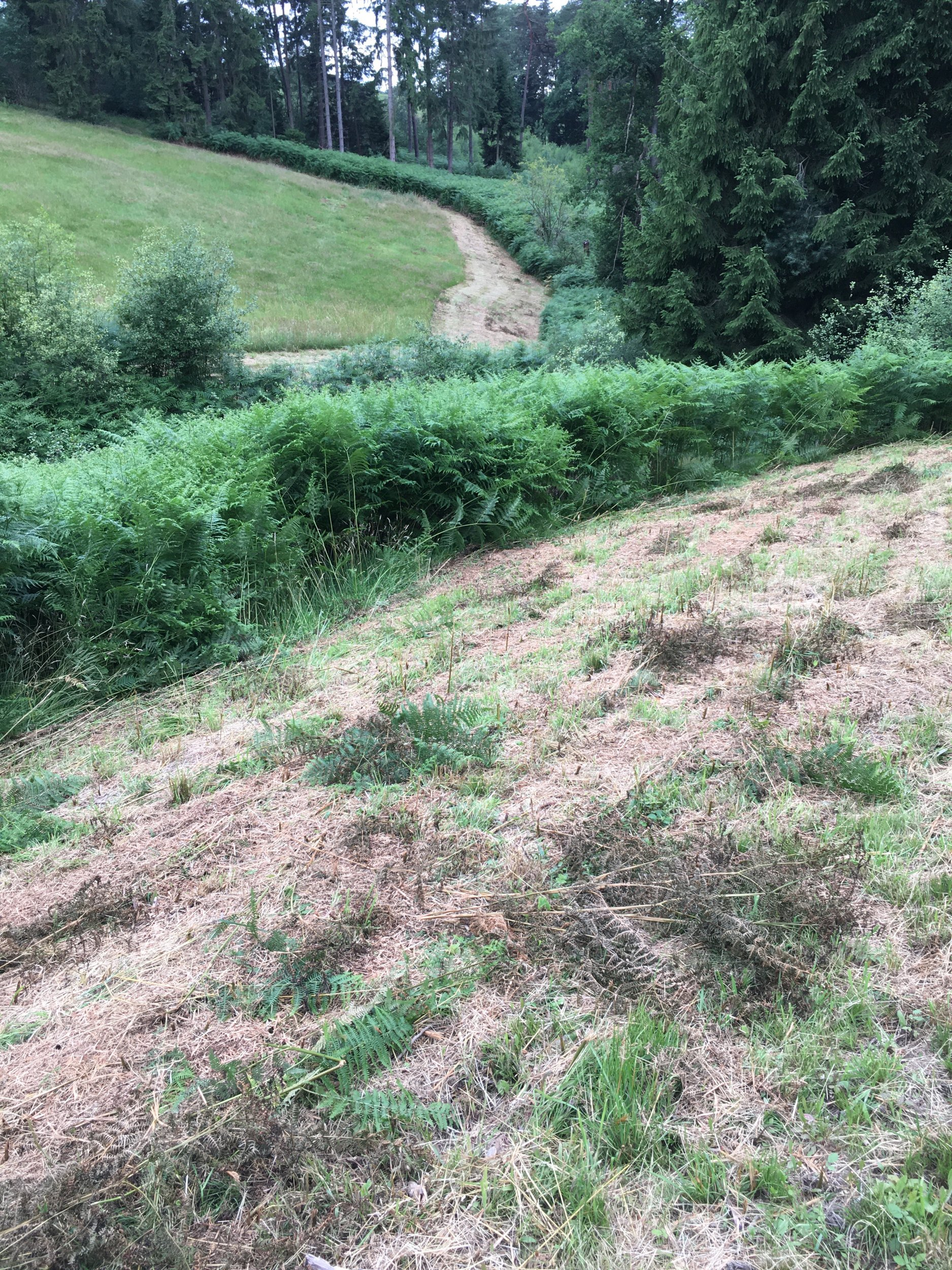One task where the flail mower has proven very efficient, is getting rid of up to 2 m (6 1/2’) tall eagle fern, which tend to invade some of our meadows: