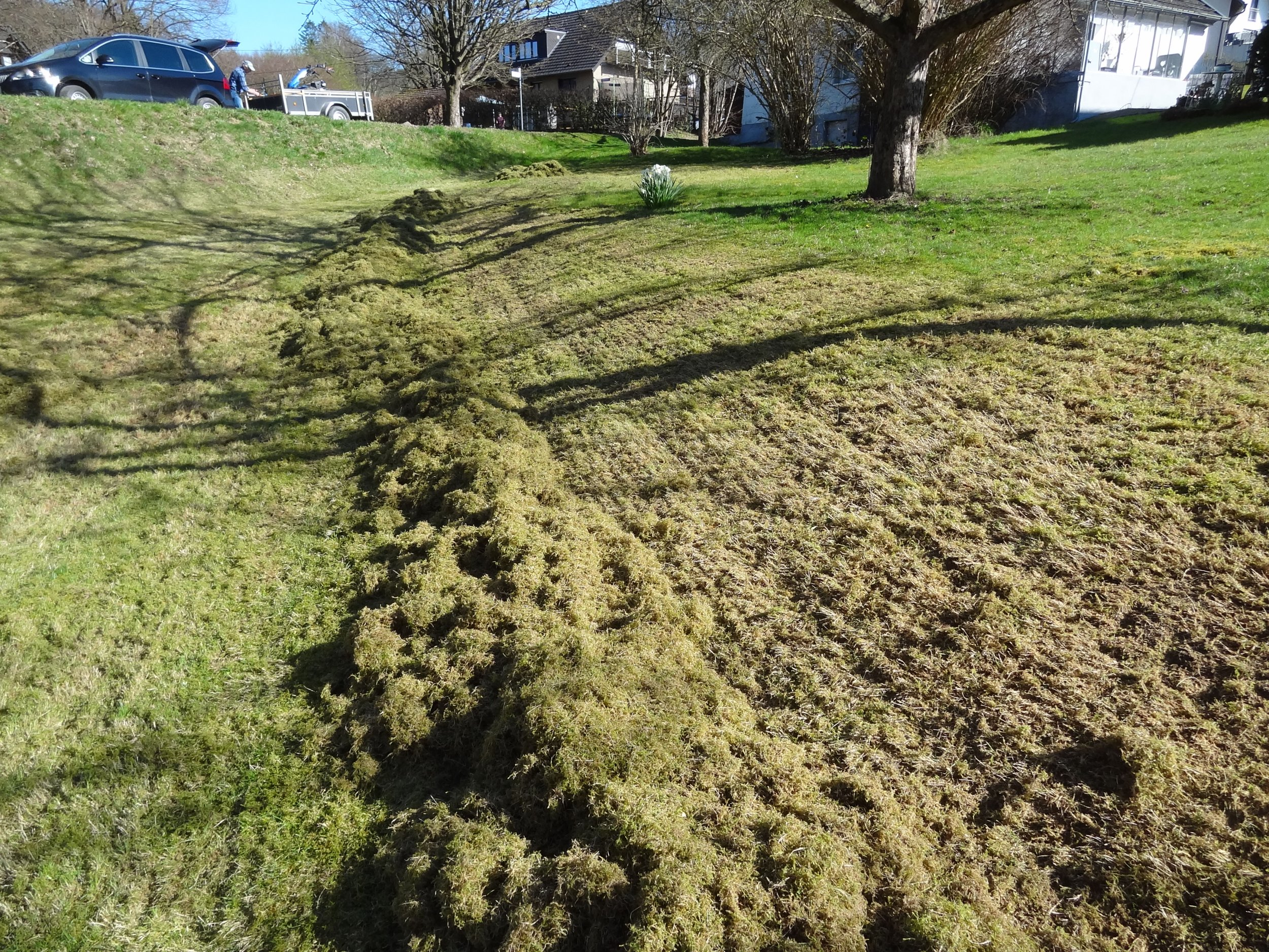 As mentioned in some of my earlier posts in this thread, I also use my Berta as a sort of scarifier/de-thatcher, to remove moss and old/dead plant material. This foto is from a lawn, where the moss had taken control: