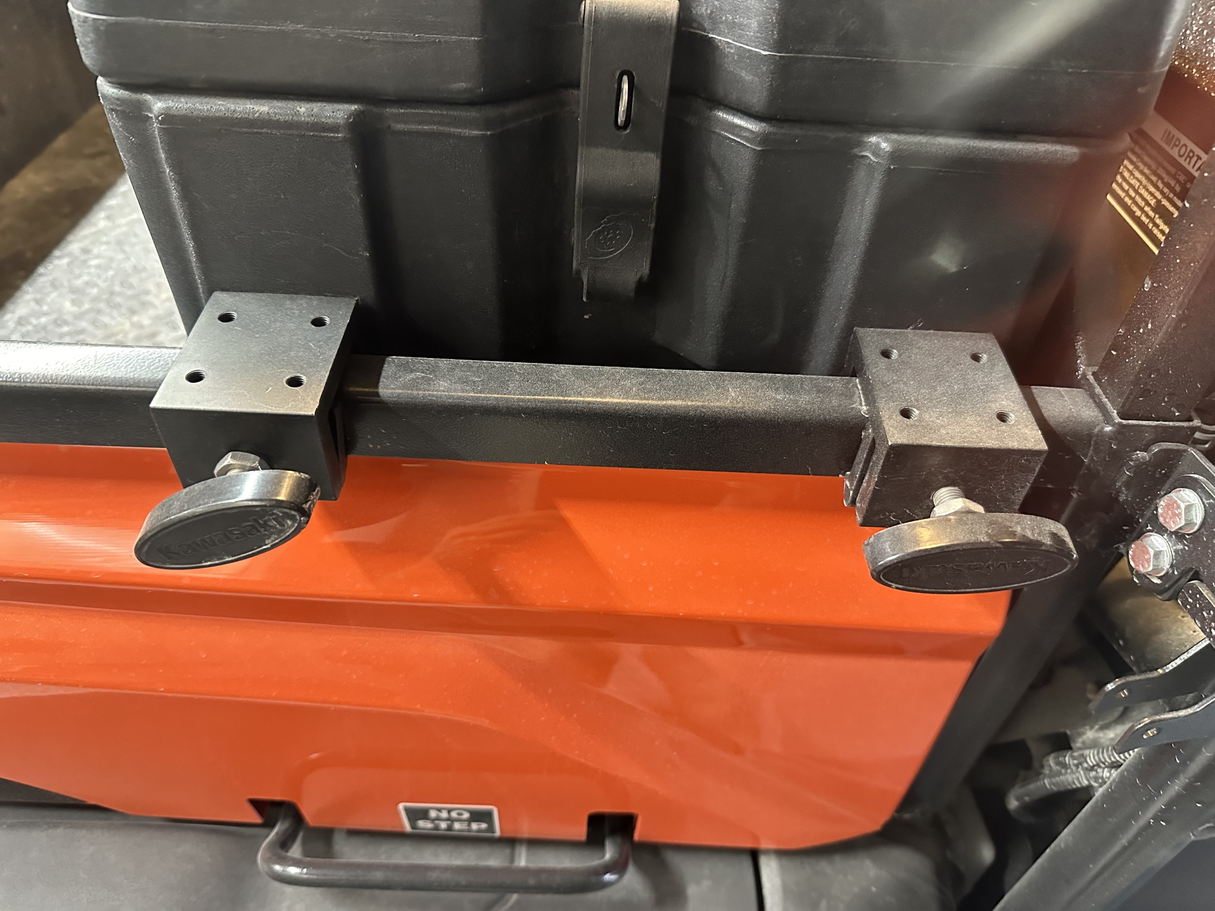 Code54, I notice that the ends of the screws for your tool holders are protruding on the inside of your rack, which can be painful if you accidentally hit them. The way I avoided exposed bolts on my carryall was by drilling holes in the exposed side that are big enough to get a socket into the right size for the nut and then use shorter bolts.Have a headache rack on both my machines. Well worth the money!View attachment 884674