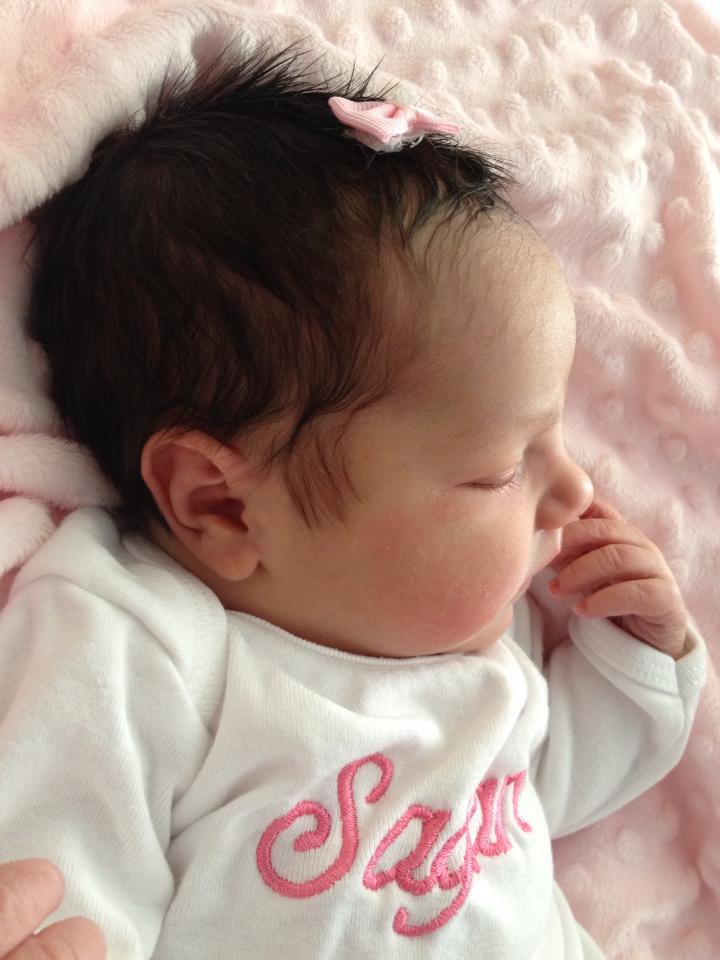 Your Grand Daughter sure has a "Head of Hair". Our first Grand Daughter has Strawberry blonde hair. When she was born, you could barely see her hair, it was so fine. I used to kid our Daughter that her Baby was Bald. Once again, Congratulations to the entire Family.