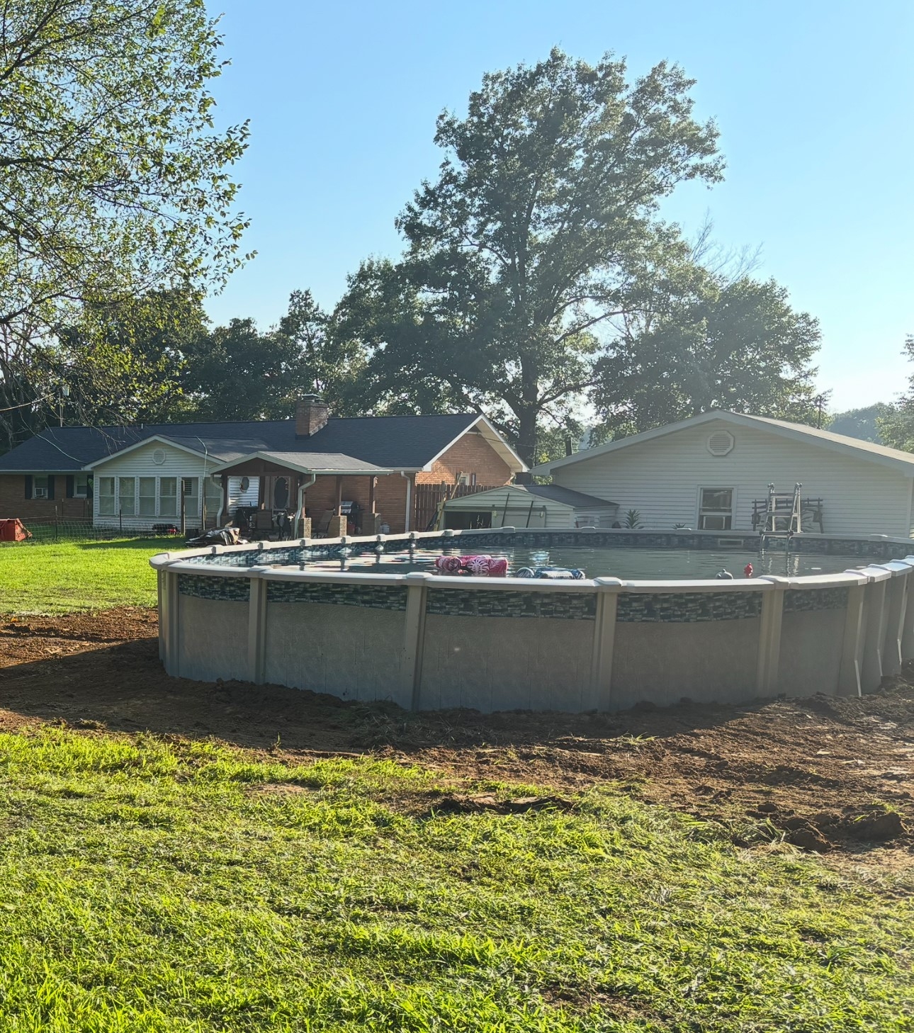 The contractor was a no-show that day after confirming with him the night before, and taking a vacation day. It made me so mad that I was determined I wasn't going to reply on anyone else to finish this $%@! pool. So, after months of work doing basically everything myself, the pool is in the process of filling up now. I did have to wait until I could get several people there at once to help get the wall into the track. I tried putting the wall up myself using a contraption to hang the pool from my FEL but was only able to unroll the pool around the perimeter and wasn't able to get it into the track, just stood up in place. Once I was able to get several people there to help me get it into the track, I was ready to rock and roll the rest of the way. This was a tough project and on I wouldn't really want to do again but with that said, I learned a lot and the next one would be worlds easier.