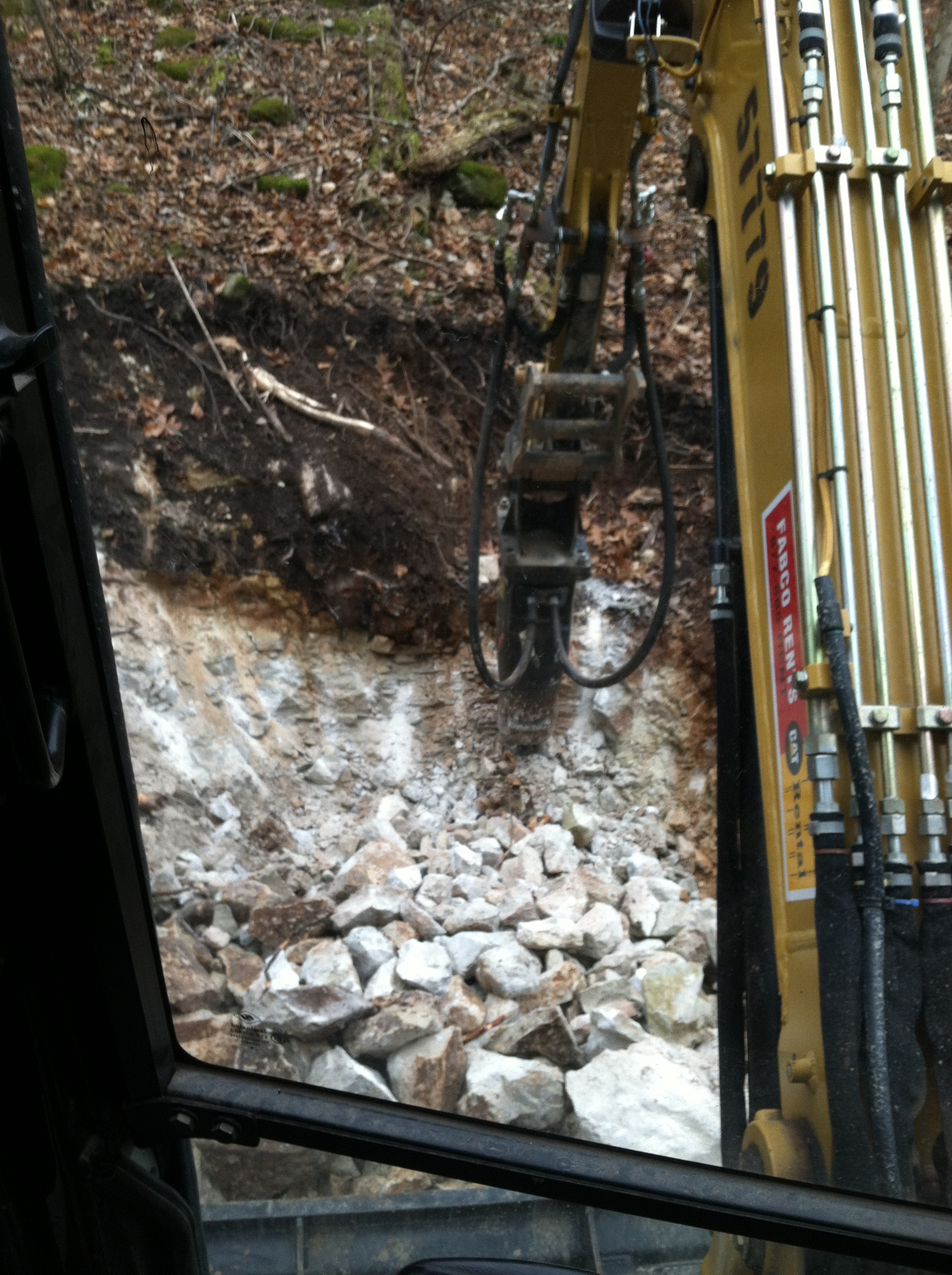 I’ve got a little mini excavator pecking away at it. I’m sure glad I didn’t use the handheld jackhammer approach. That would have really sucked. IMG_6947.JPG